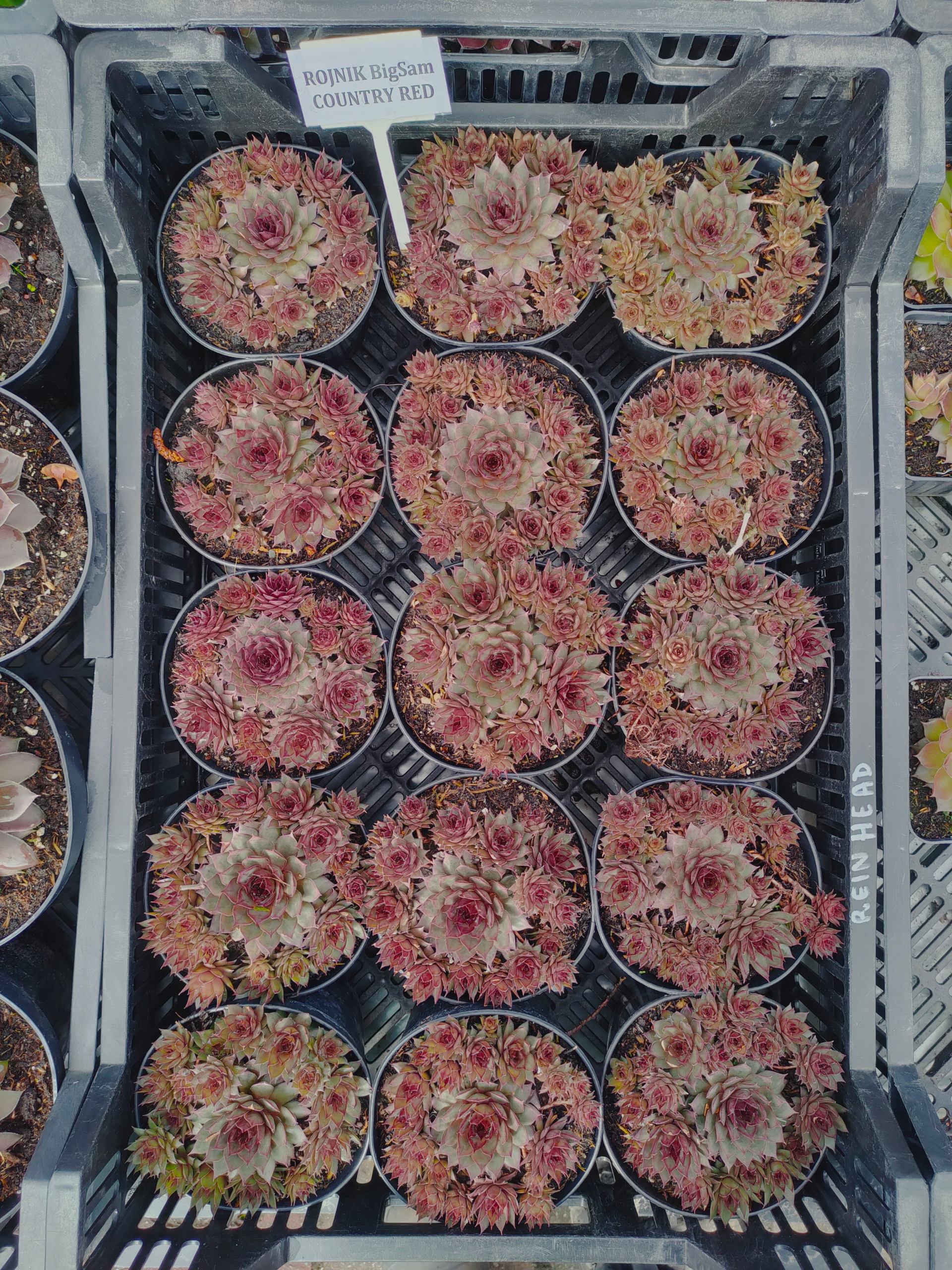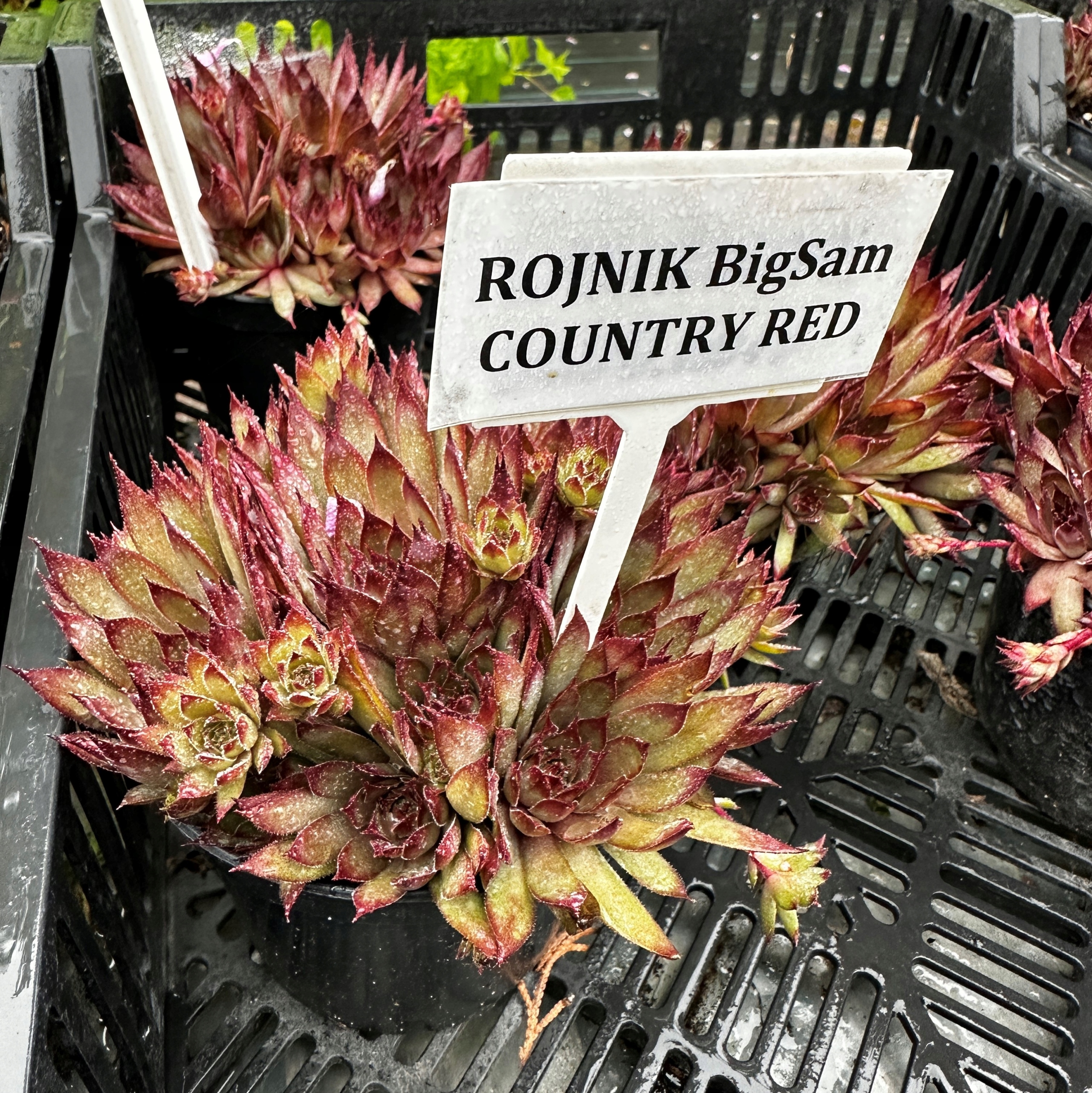 Комнаты из серии BigSam характеризуются очень крупной розеткой, достигающей 5 см в высоту и выше. до12 см в диаметре! Для сорта 'Country Red' характерна переменная окраска в течение вегетационного периода, причем насыщенность окраски зависит от количества света и наличия питательные вещества в субстрате. Весной он приобретает интенсивные, сочные красные оттенки, а летом центр розетки становится зеленым, а красный цвет внешних листьев становится более нежным.