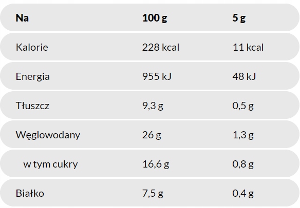 Продукт без глютена. Не содержит консервантов, лимонной кислоты, искусственных красителей и усилителей вкуса.