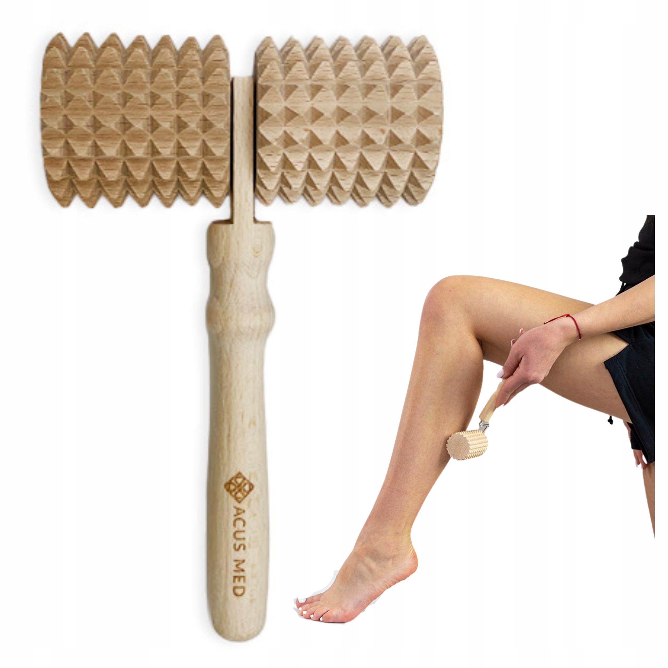 ДЕРЕВЯННЫЙ РОЛИКОВЫЙ МАССАЖЕР С РУЧКОЙ ДВОЙНОЙ РОЛИК