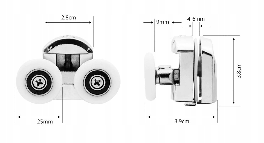 • применение - ролики подходят к душевым кабинам с такой системой, в том числе: Cersanit, Deante, Metalhurt, Aquasan, Armazi, Koło, Durasan, Sanplast, Imperial , Kabi, Savana, Maxispa и многие другие.