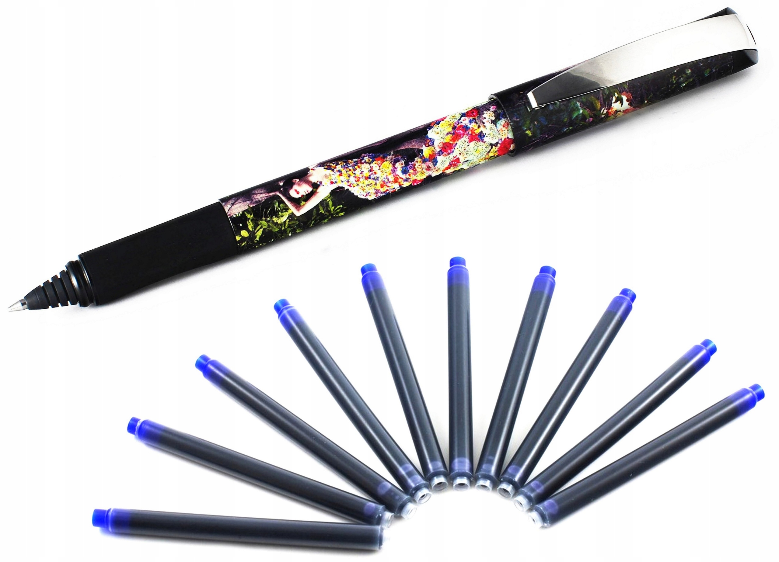 Элегантная шариковая ручка для традиционных картриджей. Изготовлен декорированный корпус и колпачок. из пластика. , гибкий металлический зажим. Передняя часть имеет прорезиненную эргономичную форму, повышающую удобство письма. В ручках, как и в перьевых ручках, вместо картриджа могут быть установлены классические поршни.