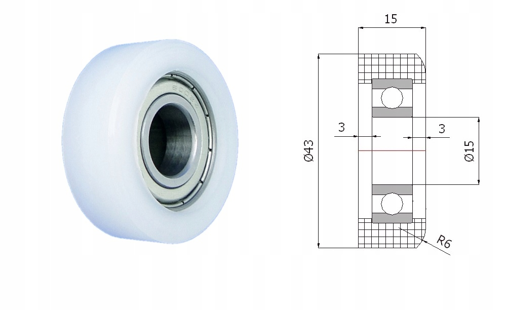 Ролик для воріт діаметр підшипника 43 мм, діаметр 15