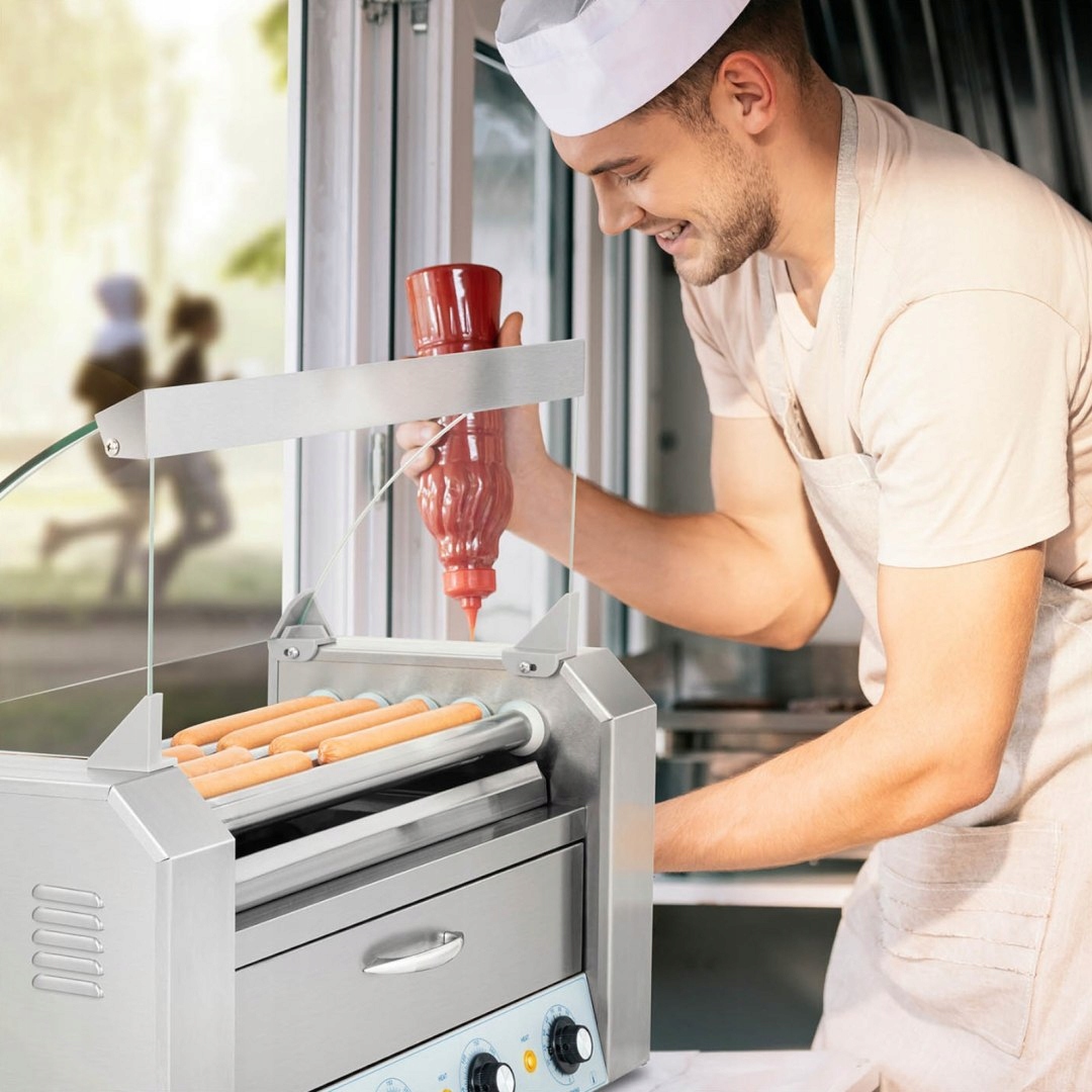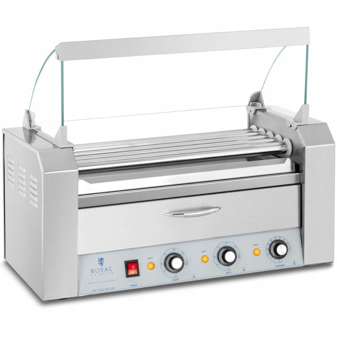 Рулевый гриль от Royal Catering хорошо подойдет в барах, буфетах, заправках и на мероприятиях на открытом воздухе. Он позволяет одновременно готовить 8 сосисок для хот-догов, сосисок, кабанос или тортильи. Равномерное вращение 360° гарантирует, что мясо подрумянится одинаково со всех сторон. Вытопленный жир собирается в поддон, который легко снять и промыть. Нагревательный ящик обеспечивает нагрев рулонов до температуры от 30 до 110°C. Две зоны нагрева позволяют самостоятельно устанавливать температуру. Колбаски можно приготовить на гриле или просто разогреть. Температура регулируется в диапазоне 30-250°C. Крышка из закаленного стекла защищает продукты от загрязнения и позволяет готовить колбасы на глазах у покупателей.