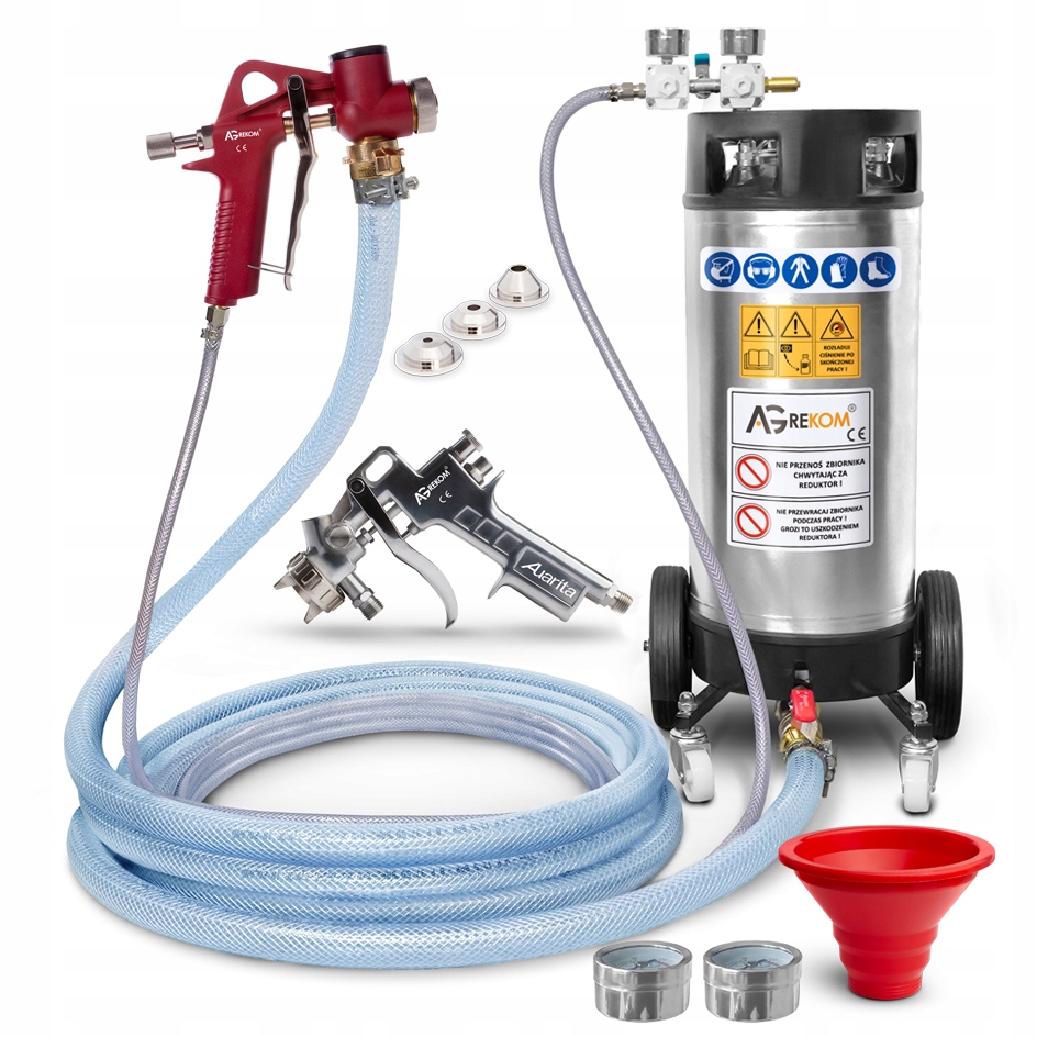 - 10 м армированного шланга с фитингами для подвода воздуха к пистолетам, (2 резьбовых участка по 5 метров каждый с внутренним диаметром 8 мм),