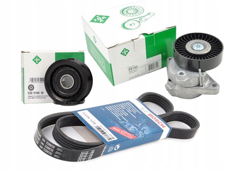 В комплект входят: клиновой ремень Bosch, натяжной ролик INA и INA > натяжитель >.