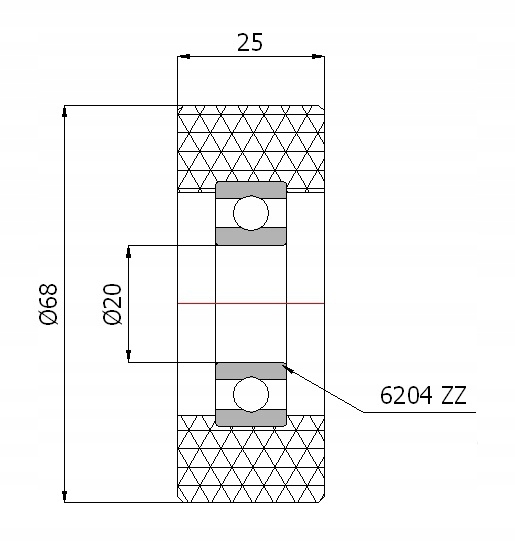 Условное обозначение ролика: RP-68-25/20