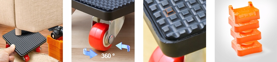 Комплект для транспортировки мебели оснащен нескользящими накладками в середине панелей транспортной тележки. Противоскользящие накладки прочно удерживают основание и ножки вашей мебели и обеспечивают сильное трение, обеспечивая плавную и устойчивую транспортировку вашей мебели.