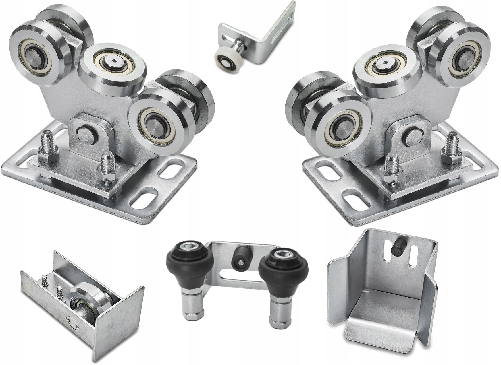 5-роликовая тележка для рельса 80 х 80 - стальные ролики - 2 шт.