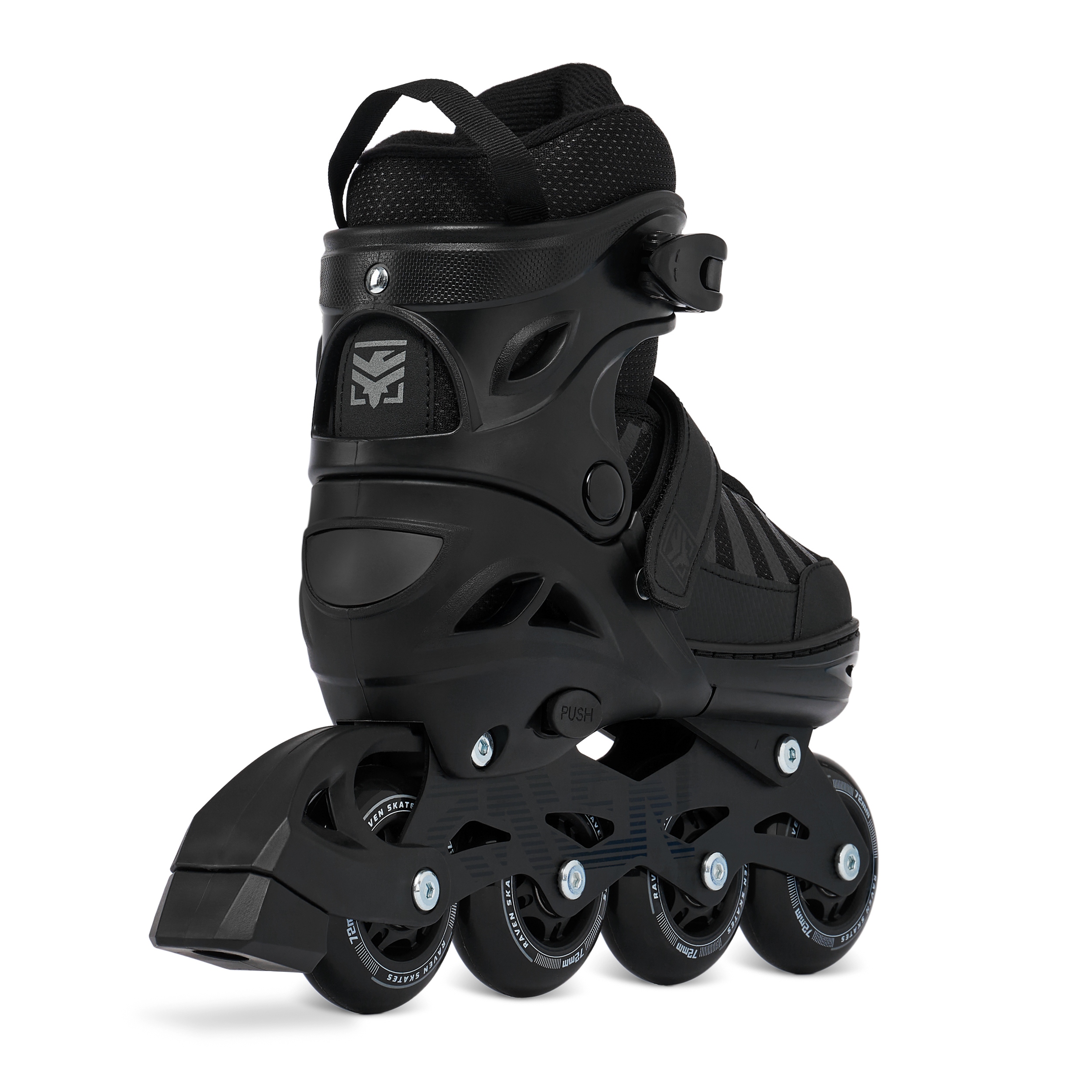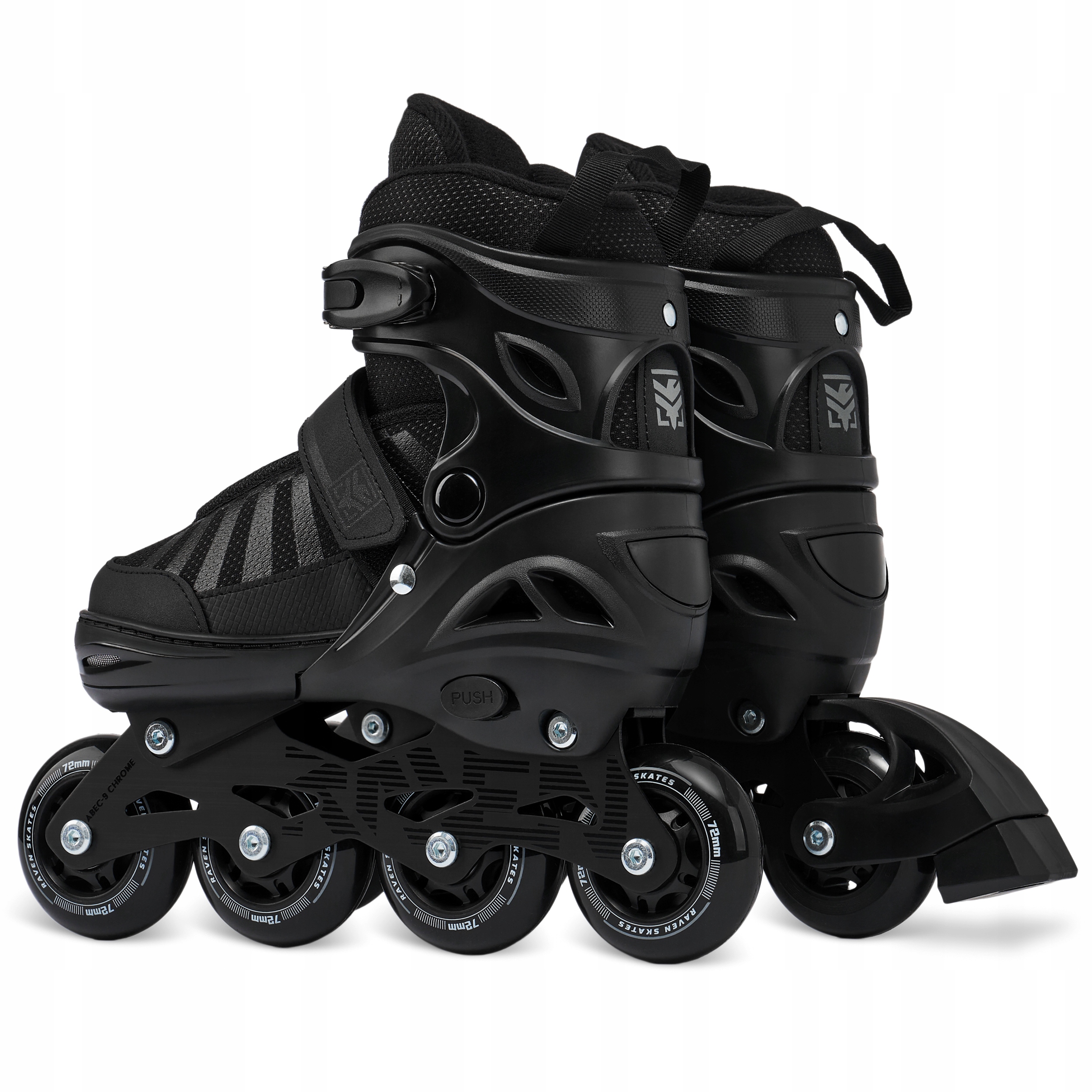 Шнурки, пряжка с зубчатым ремнем и защелка обеспечивают правильное затягивание и надежное удержание ноги в обуви, предотвращают смещение стопы и гарантируют безопасное вождение. Застежки на коньках Raven имеют кнопку, которая предотвращает их расстегивание во время катания. Ремешок на липучке позволяет удерживать шнурки, предотвращая их случайное расстегивание.