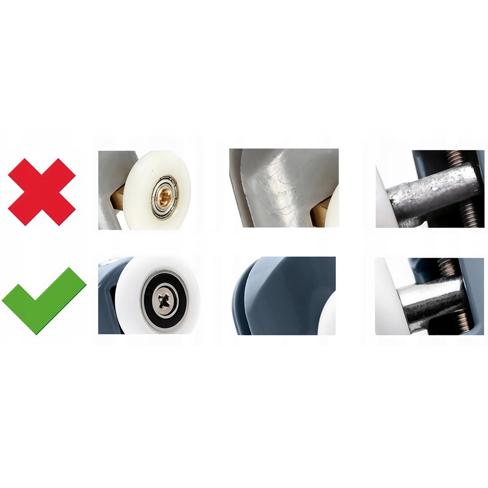 - ВАЖНЫЙ ЭЛЕМЕНТ ДУШЕВОЙ КАБИНЫ - ролики отвечают не только за плавное открывание двери, но и также в значительной степени они защищают их от выпадения из направляющей. Они плотно закрывают дверцу, поэтому после выхода в ванную не забрызгают брызги!