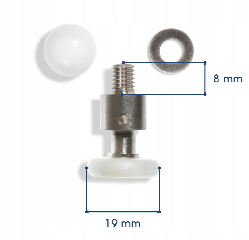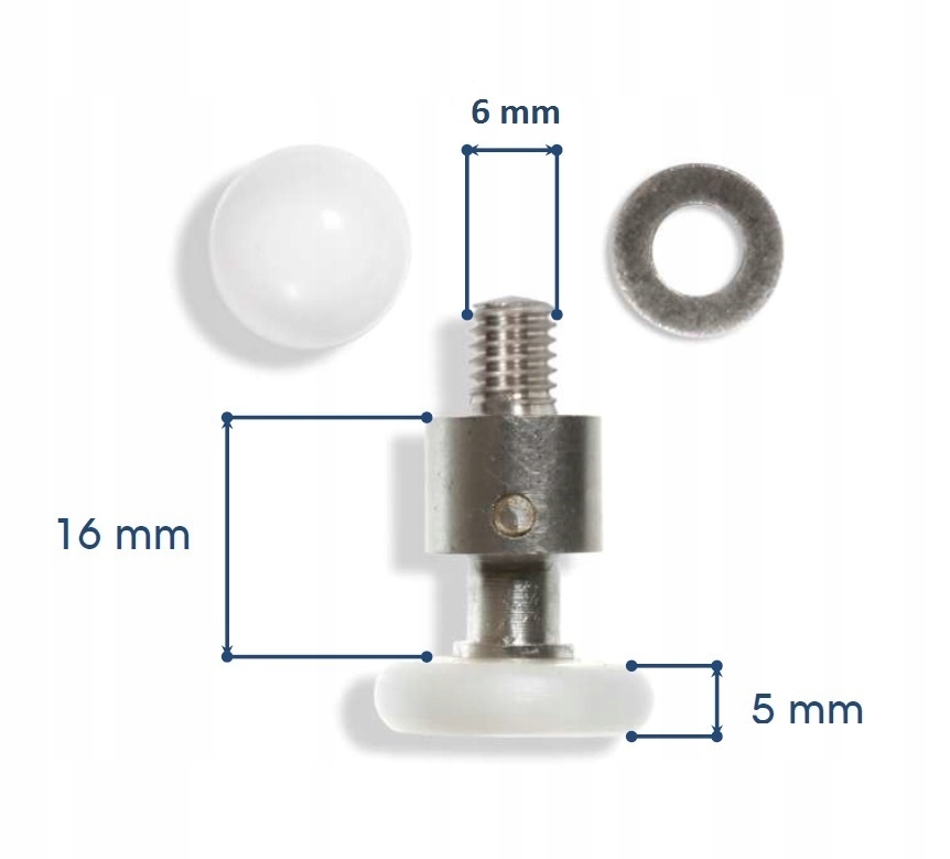 Ралик шарнирный для душевой кабины. Роликовый штифт и все элементы конструкции изготовлены из металла с повышенной устойчивостью к ржавчине.