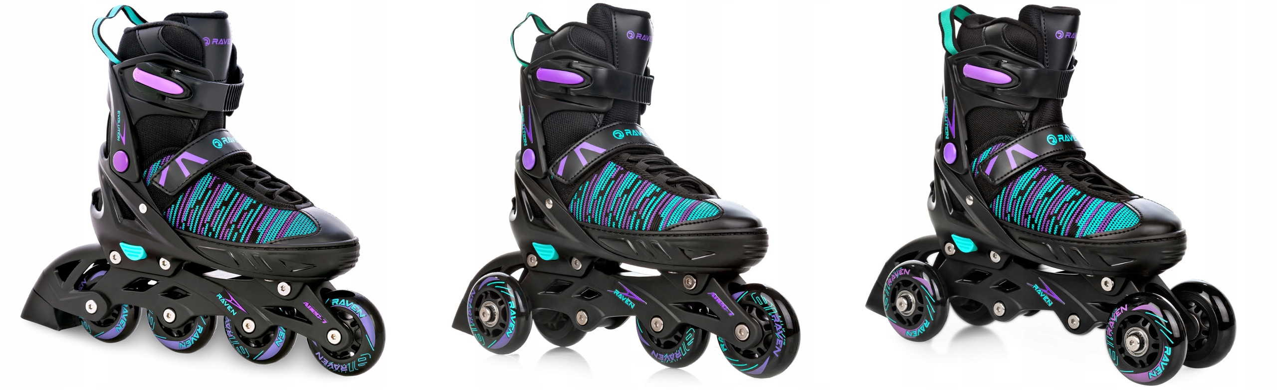 Роликовые коньки RAVEN 3в1 Cande Черный/Мятный/Фиолетовый 35-39