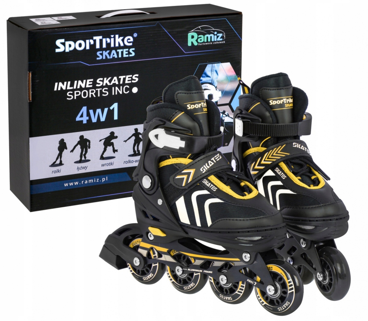 Ролики SporTrike регульовані чорні/жовті 4 колеса 70 мм 85A ABEC-7