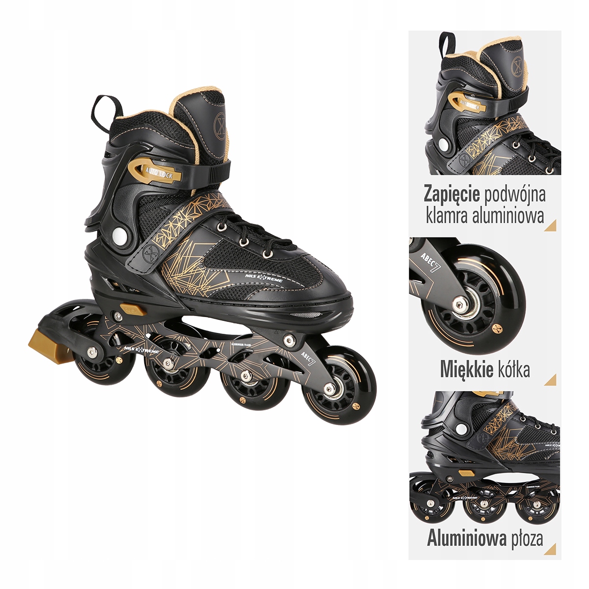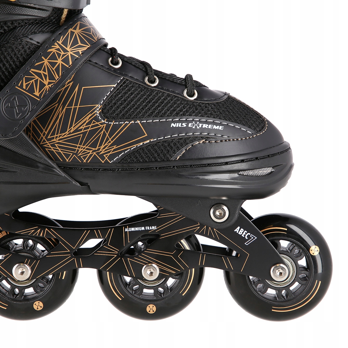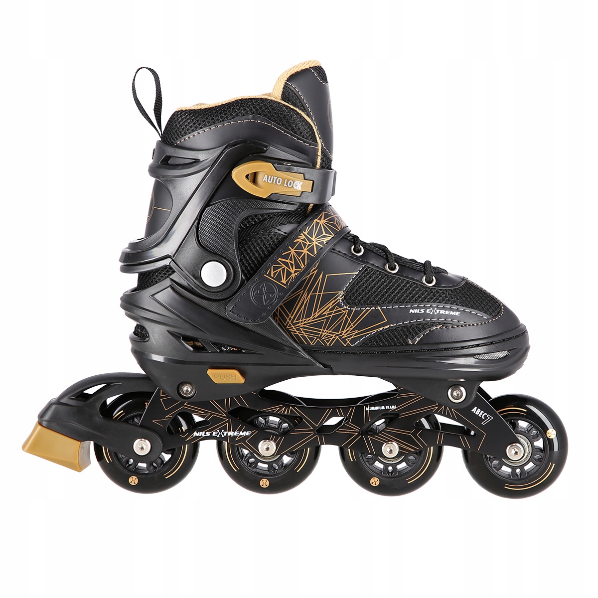 Роликовые коньки NH18192 — это настоящее удовольствие от катания. Благодаря возможности перемещения дополнительного колеса на заднюю ось роликовые коньки функционально трансформируются в роликовые коньки. Данное решение поможет самым юным фигуристам сделать первые шаги в этом виде спорта. В свою очередь, установка дополнительного колеса на переднюю ось превращает изделие в роликовые коньки. Роликовые коньки оснащены специальными алюминиевыми полозьями и тормозом, что обеспечивает безопасность во время катания. В свою очередь, колеса и подшипники класса ABEC7 позволяют снизить сопротивление качению, то есть ускорить езду.