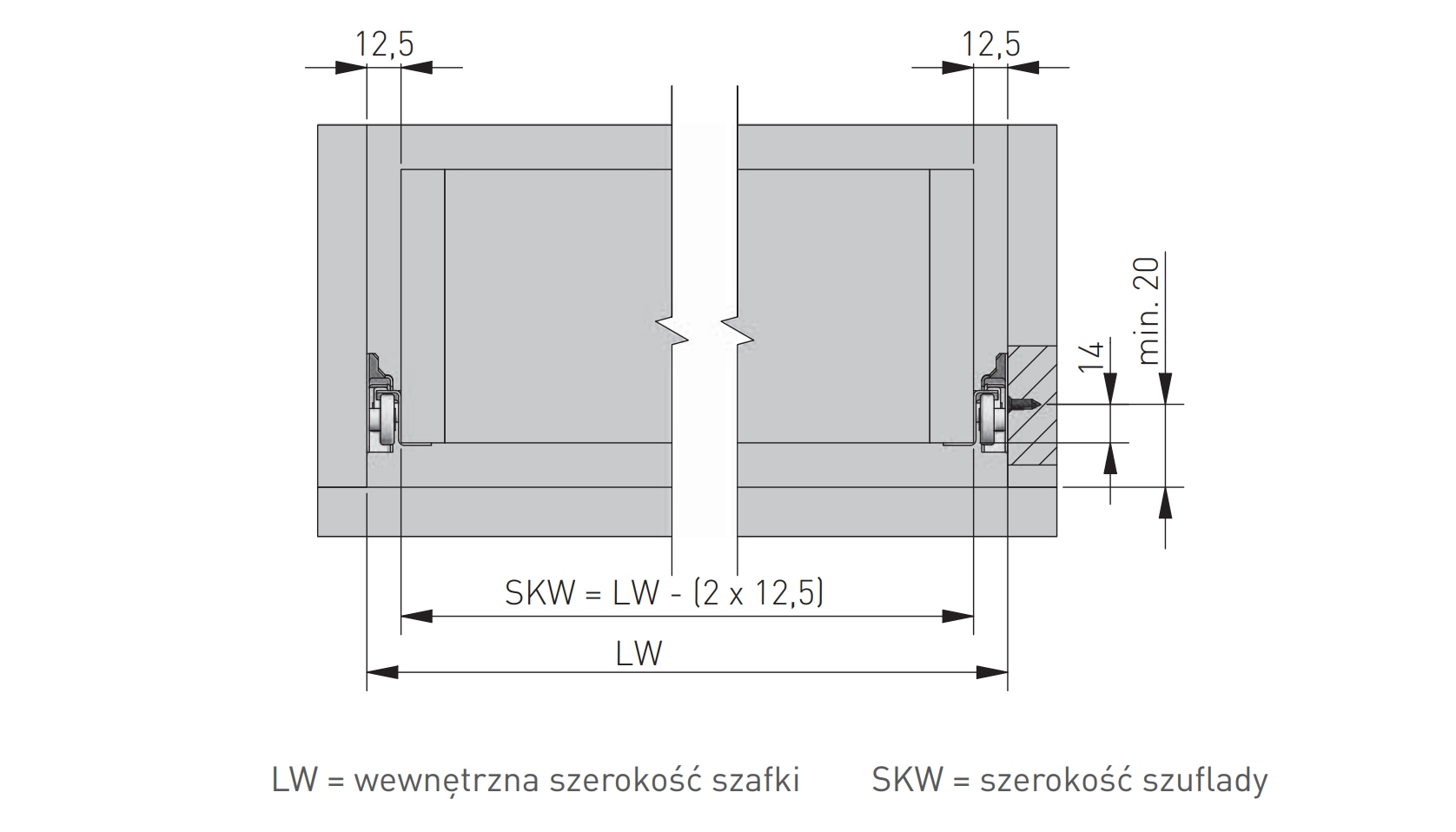 МЕБЕЛЬНЫЕ НАПРАВЛЯЮЩИЕ РОЛИКОВЫЕ ДЛЯ ЯЩИКОВ L=600 ММ