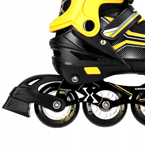 ✨Роликовые коньки NH18190 — это настоящее удовольствие от катания. Благодаря возможности перемещения дополнительного колеса на заднюю ось роликовые коньки функционально трансформируются в роликовые коньки. Такое решение поможет самым юным роликистам сделать первые шаги в этом виде спорта. В свою очередь, установка дополнительного колеса на переднюю ось превращает изделие в роликовые коньки. Роликовые коньки оснащены специальными алюминиевыми полозьями и тормозом, что обеспечивает безопасность во время катания. В свою очередь, колеса и подшипники класса ABEC7 позволяют снизить сопротивление качению, т. е. повысить скорость движения.✨