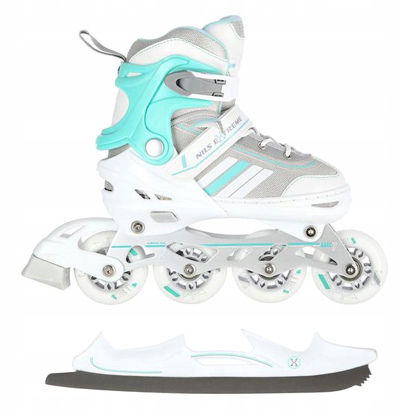 Роликовые коньки 2 в 1 NILS NH18191 Белые и синие Ролики и коньки Размер 34-38