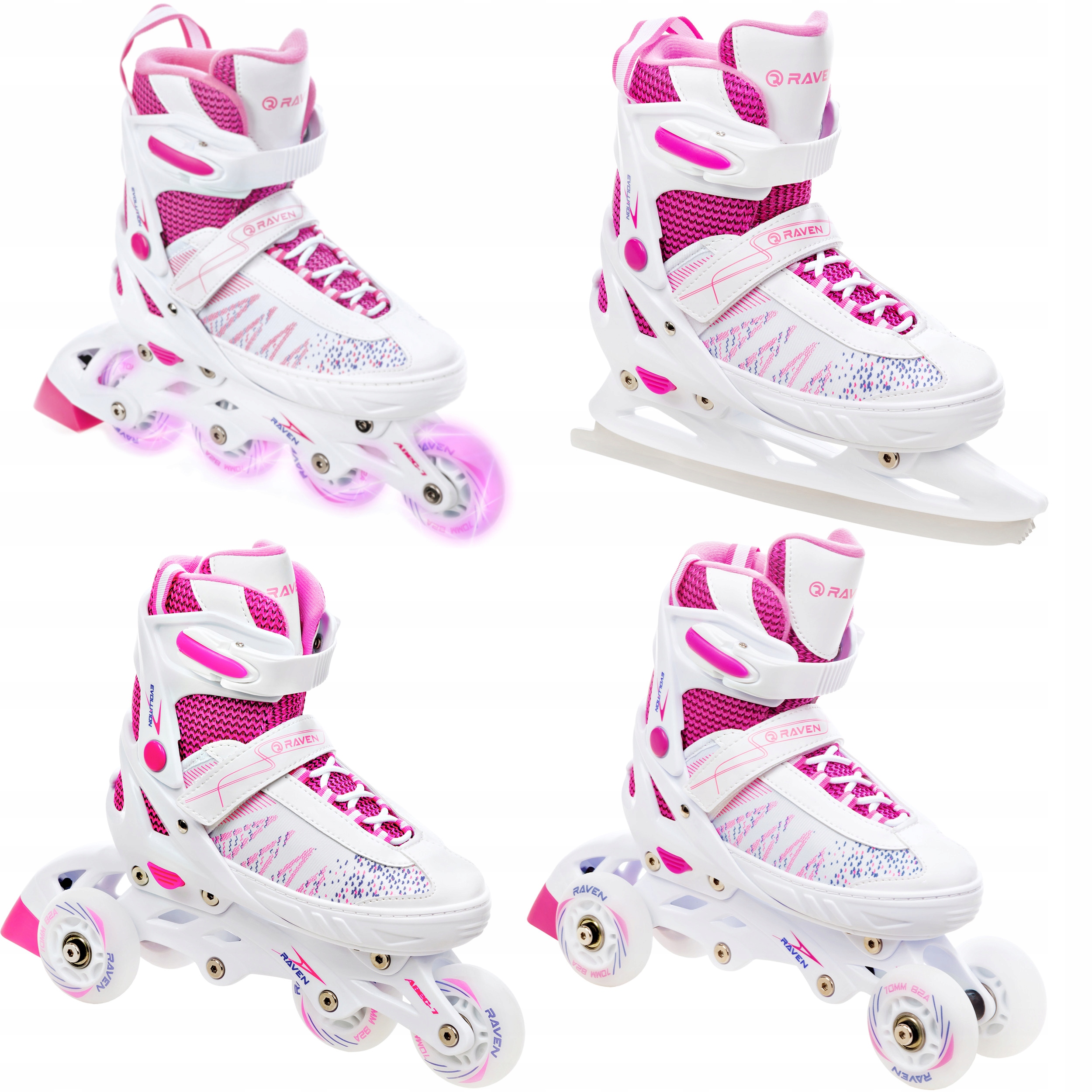 Ролики Роликовые коньки 4 в 1, регулируемые светодиодные колеса RAVEN Grace 31-35