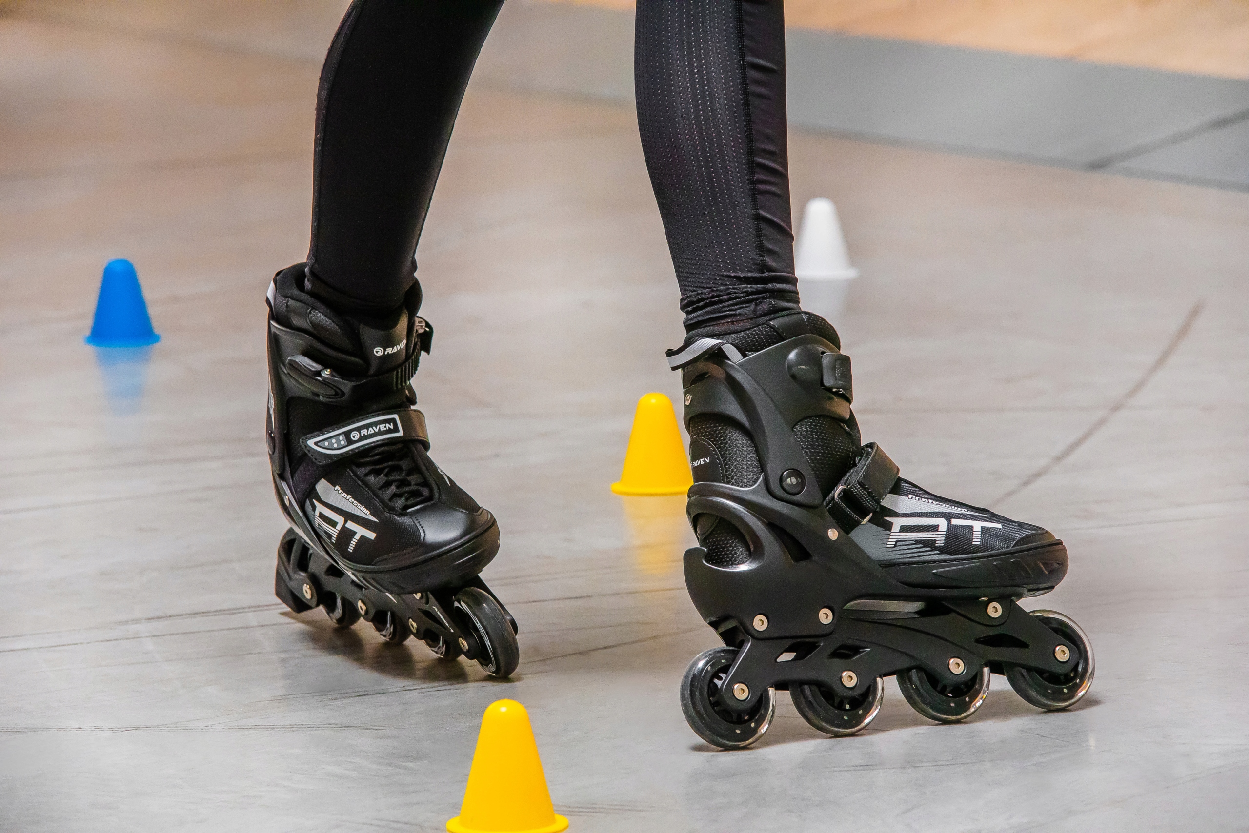 Размер роликов можно отрегулировать, нажав кнопку механизма регулировки и вытянув переднюю часть корпуса обуви.