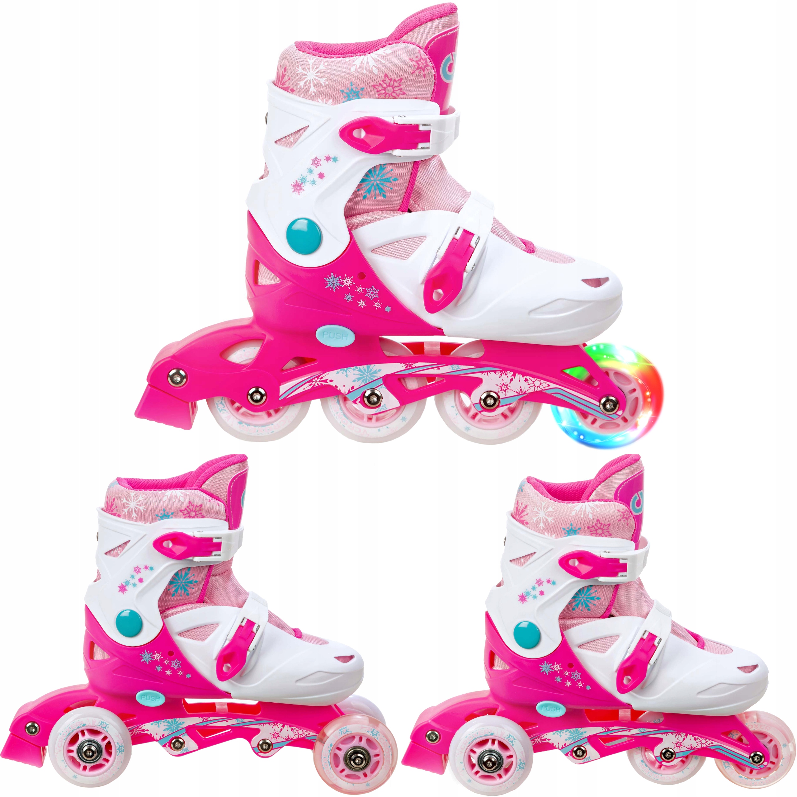 Роликовые коньки 3в1 Croxer Missy 31-34 LED переднее колесо