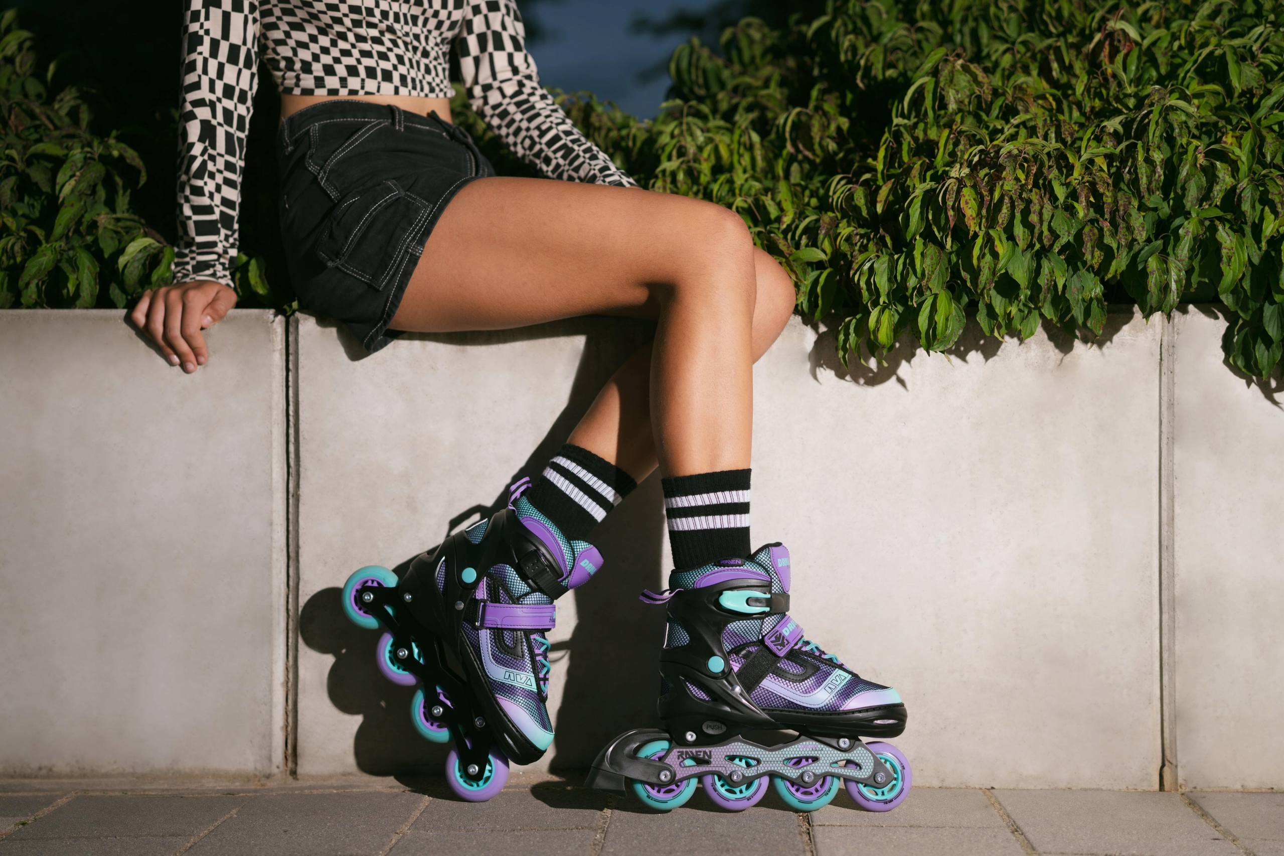 Шнурки, пряжка с зубчатым ремнем и защелка обеспечивают правильное затягивание и надежное удержание ноги в обуви, предотвращают смещение стопы и гарантируют безопасное вождение. Застежки на коньках Raven оснащены кнопкой, которая предотвращает их расстегивание во время катания. Ремешок на липучке позволяет удерживать шнурки, предотвращая их случайное расстегивание.