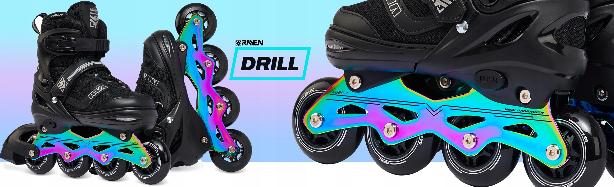 Drill — модель роликовых коньков, предназначенная для новичков и пользователей среднего уровня, предлагающая то, чем славится бренд Raven — отличное качество материалов, исключительную долговечность и высокий комфортиспользования.