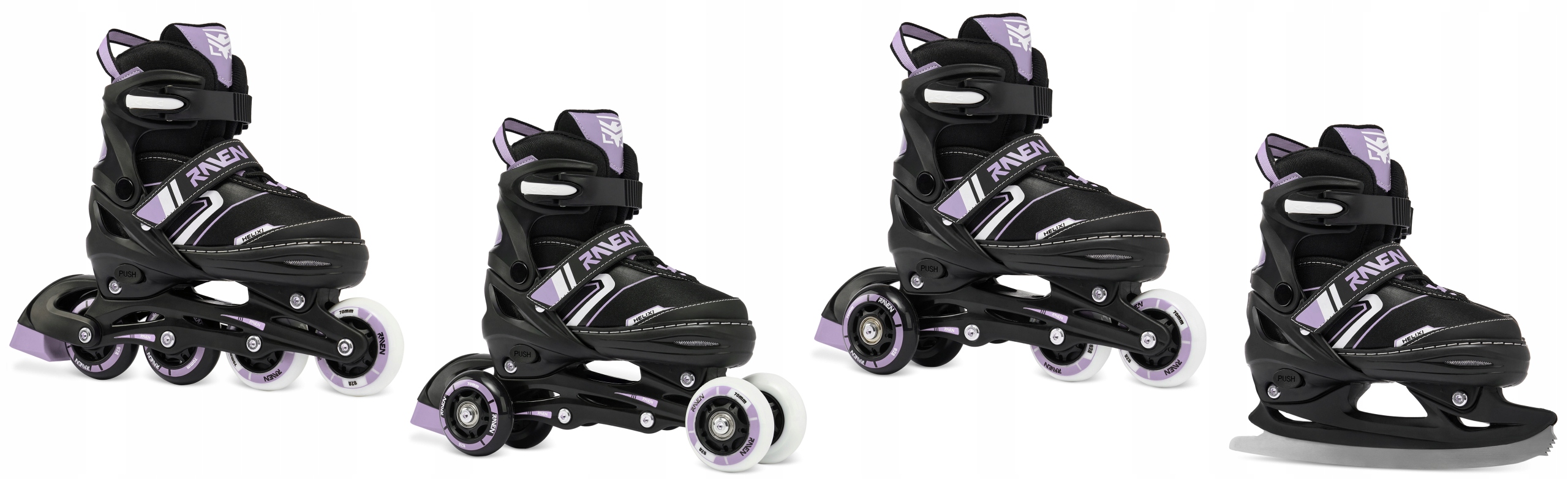 Роликовые коньки Фигурные коньки 4в1 RAVEN Helixi Черный/Фиолетовый 34-37 Светодиодные колеса