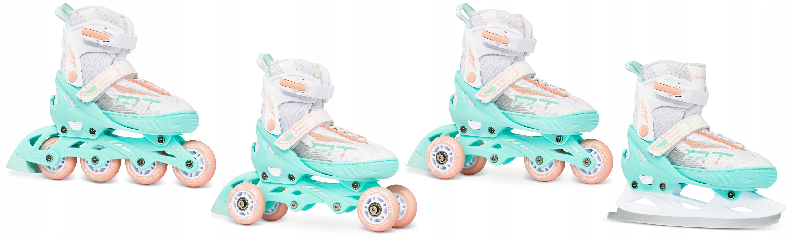 Ролики Роликовые коньки регулируемые 4в1 RAVEN Profession Белый/Мятный/Оранжевый 28-32