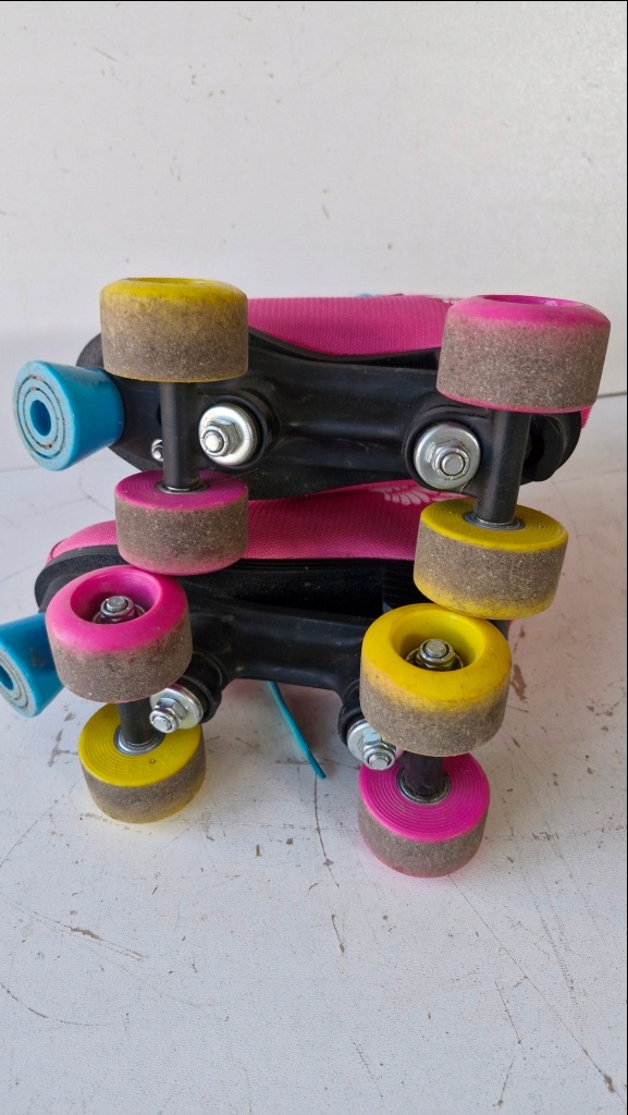 Я должен продать Playground Pink Roller Skates Размер 34-35 используется, полностью функциональный. Набор в хорошем состоянии имеет нормальные признаки использования. Материал не имеет раздражения. Ролики имеют несколько царапин. Состояние ясно видно на картинках. Я продаю набор, как на картинках.