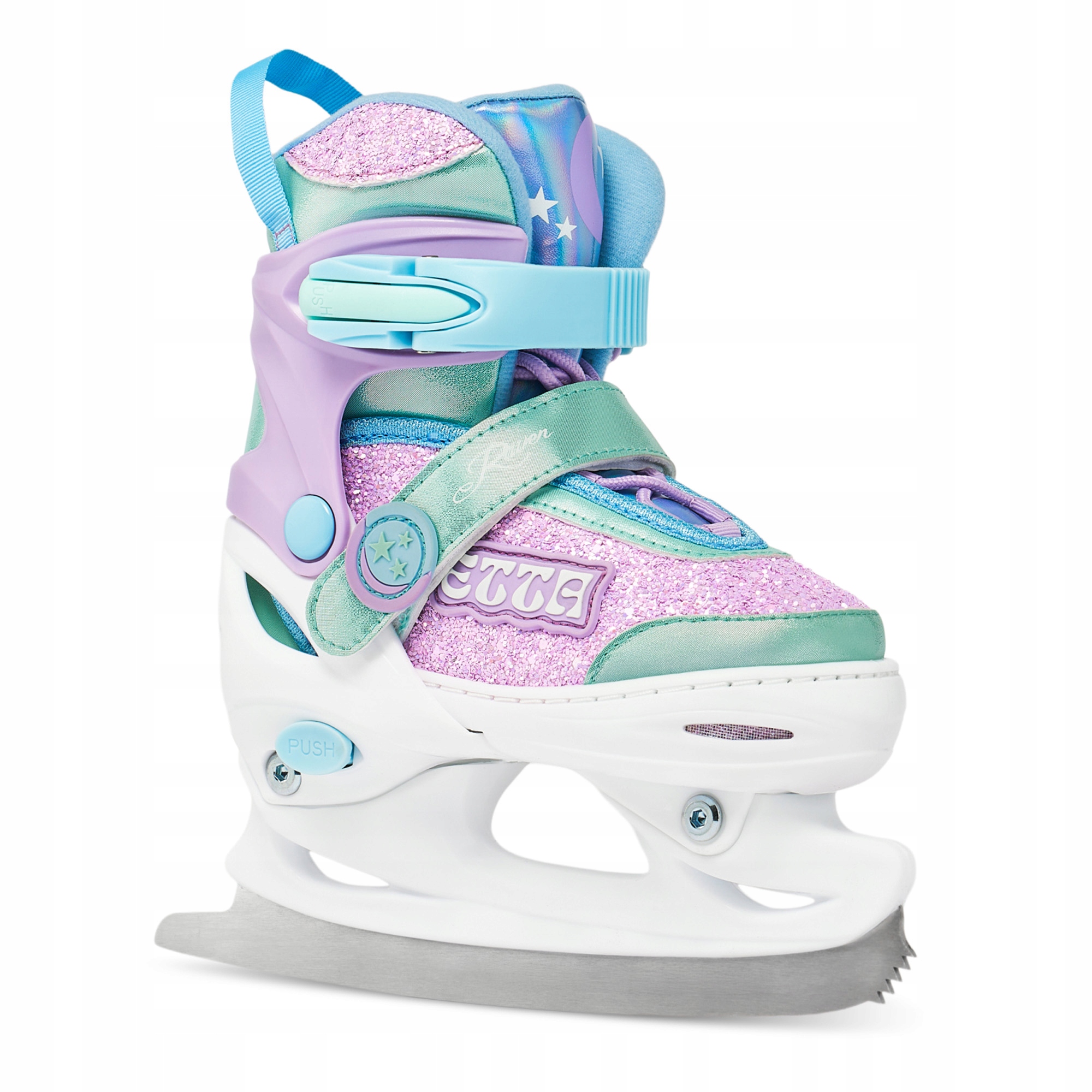 Для изменения размера не требуются инструменты. Просто нажмите кнопку и разложите переднюю часть башмака. Благодаря этому коньки прослужат много сезонов и всегда будут хорошо подогнаны под размер стопы.