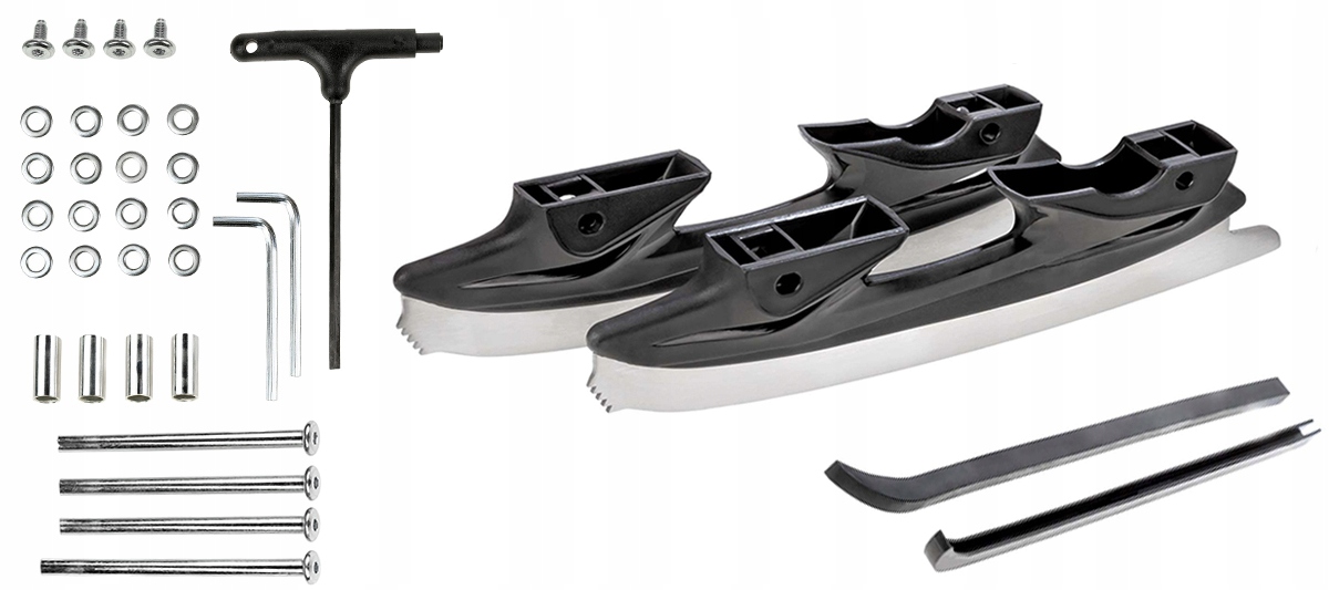 Гаечные ключи, винты и удлиненные оси, позволяющие открутить колеса и установить их с обеих сторон роликовых полозьев для получения нужной конфигурации. Это облегчает первые шаги на роликах, помогает сохранять равновесие и снижает вероятность падения.