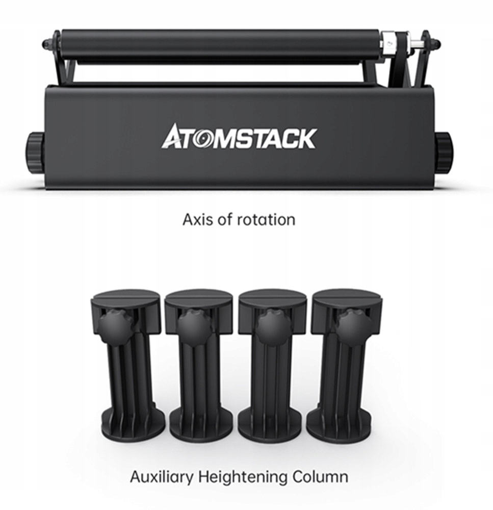 ATOMSTACK R3 Лазерный вращающийся вал Лазерный гравер Поворотный вал по оси Y с поворотом на 360 градусов ° Переход к лазерной гравировке Банки для цилиндрических предметов (в комплекте 4 подъемные ножки)