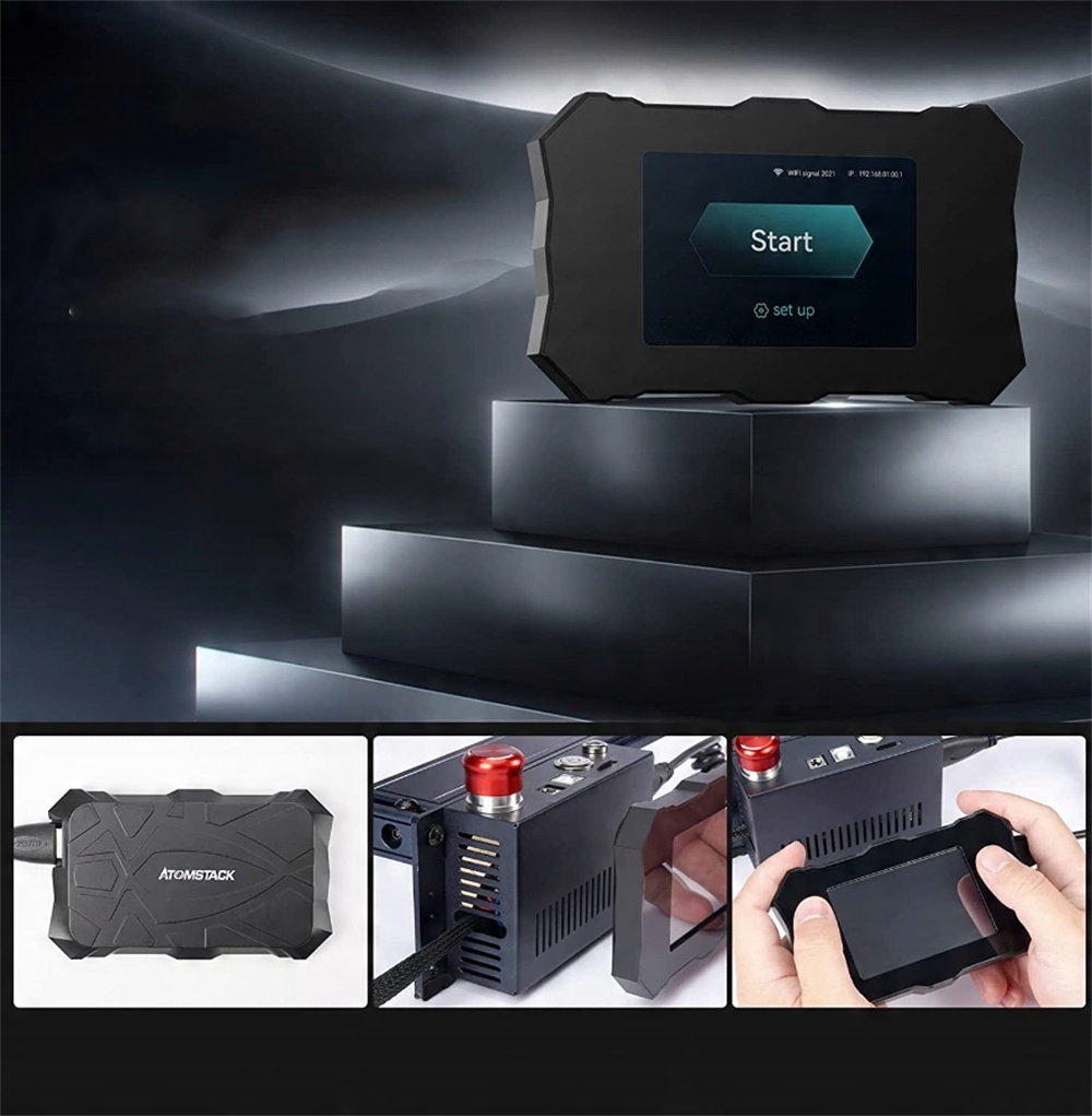 Лазерный резак A10 PRO настраивает панель управления терминалом для поддержки автономной гравировки. Панель имеет эргономичный дизайн корпуса для удобной работы и конструкцию магнитно-адсорбционного соединения для лучшего крепления к блоку управления. Благодаря сенсорной панели и 32-битной материнской плате вы можете выполнять гравировальные работы в любом месте и в любое время без ограничений со своего компьютера.