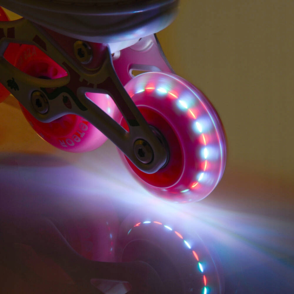 Роликовые коньки Meteor 4-в-1 имеют 2 колеса, которые загораютсяво время катания.
