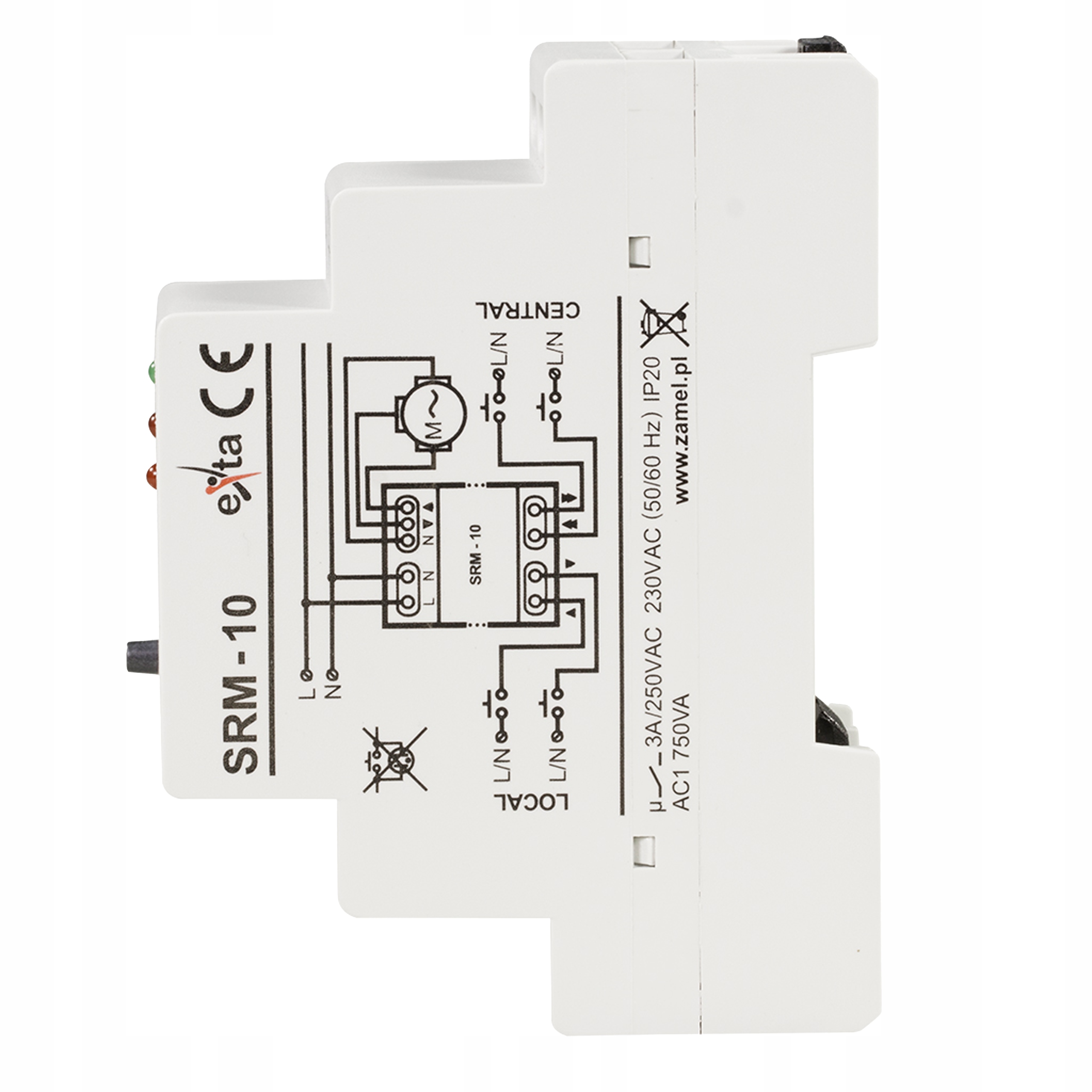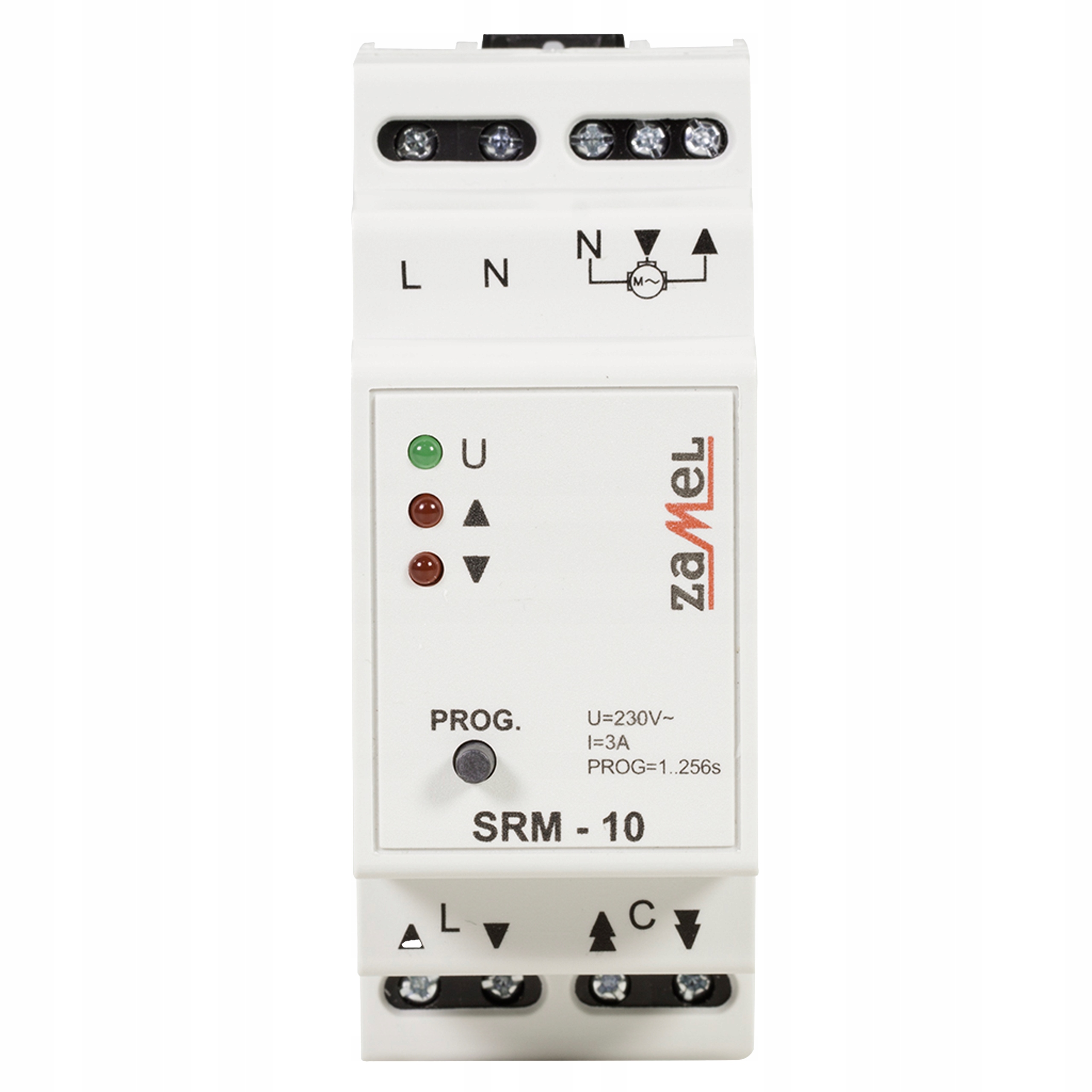 Описание продукта. Контроллер Blinds Srm-10 используется для закрытия и открытия палочного ролика с помощью двигателя переменного тока. Управление выполняется с использованием кнопок с одной стороны. Контроллер оснащен локальными и центральными входами управления. Все входы управления могут быть запускаются из фазового кабеля (L) или нейтрального (n). Пользователь имеет возможность запрограммировать время движения роллеров с 1 с до 256 с.