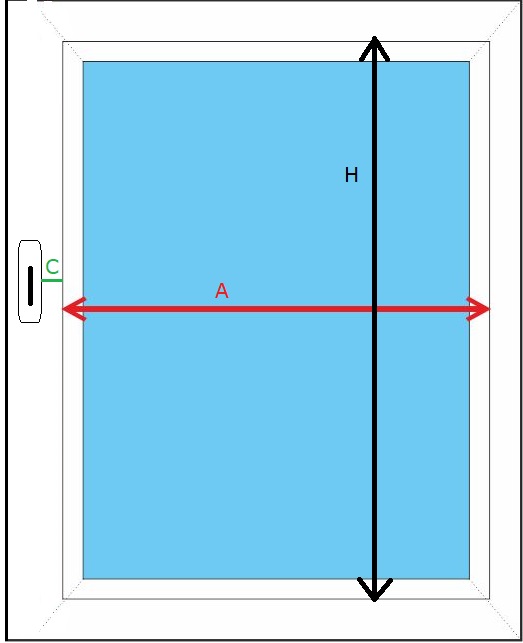 - Ширину измеряем от основания оконной ручки «С» до штапика – этот размер позволит нам сделать направляющие соответствующим образом.