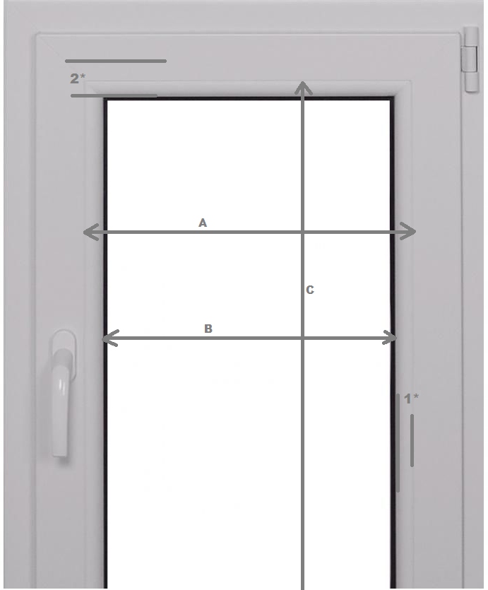 1* – на поверхности должна быть плоская поверхность толщиной не менее 8 мм. лицевая сторона полосы. Если такового нет, перед покупкой укажите количество и отправьте нам фотографию ленты вместе с размерами окна (A, B, C), чтобы выбрать подходящую систему