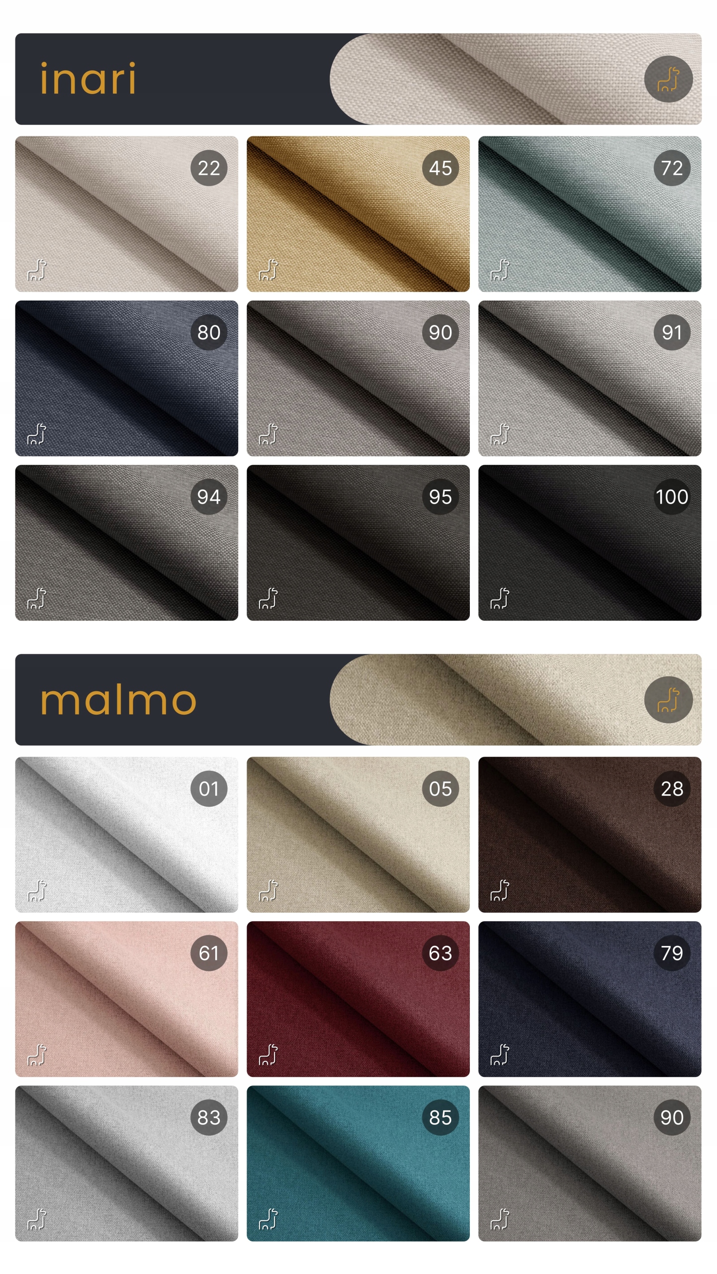 Ткань MALMO относится к группе плетенок, известных своей прочностью. Мальмё также устойчив к скатыванию и обесцвечиванию, вызванному искусственным освещением. Таким образом, мебель с этим обивочным материалом дольше сохраняет хороший внешний вид.