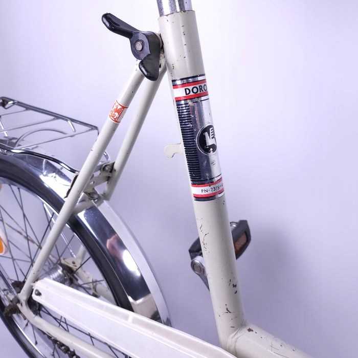 Велосипед Romet Wigry 3, 1979 г.в. Велосипед полностью функционален, за исключением несмотря на поцарапанную раму, она в очень хорошем состоянии. Редкая бежевая версия с хромированными крыльями и хромированным багажником. Красивый хром, задняя резина 1980 года, передняя 1982 года, обе в хорошем состоянии, не треснутые, протектор почти в идеальном состоянии.