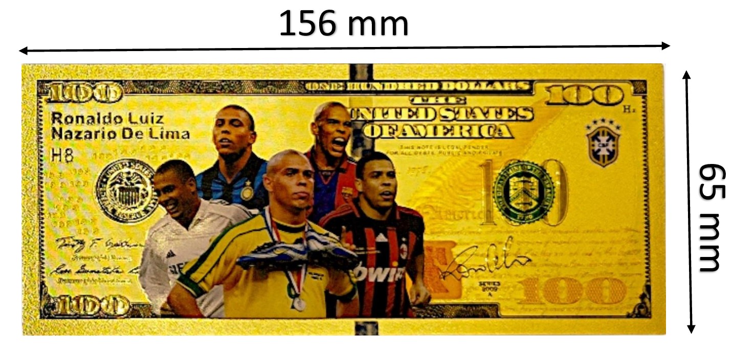 прекрасно сделан из банкноты из ПВХ с изображением Роналду R9 , покрытый золотой пленкой.