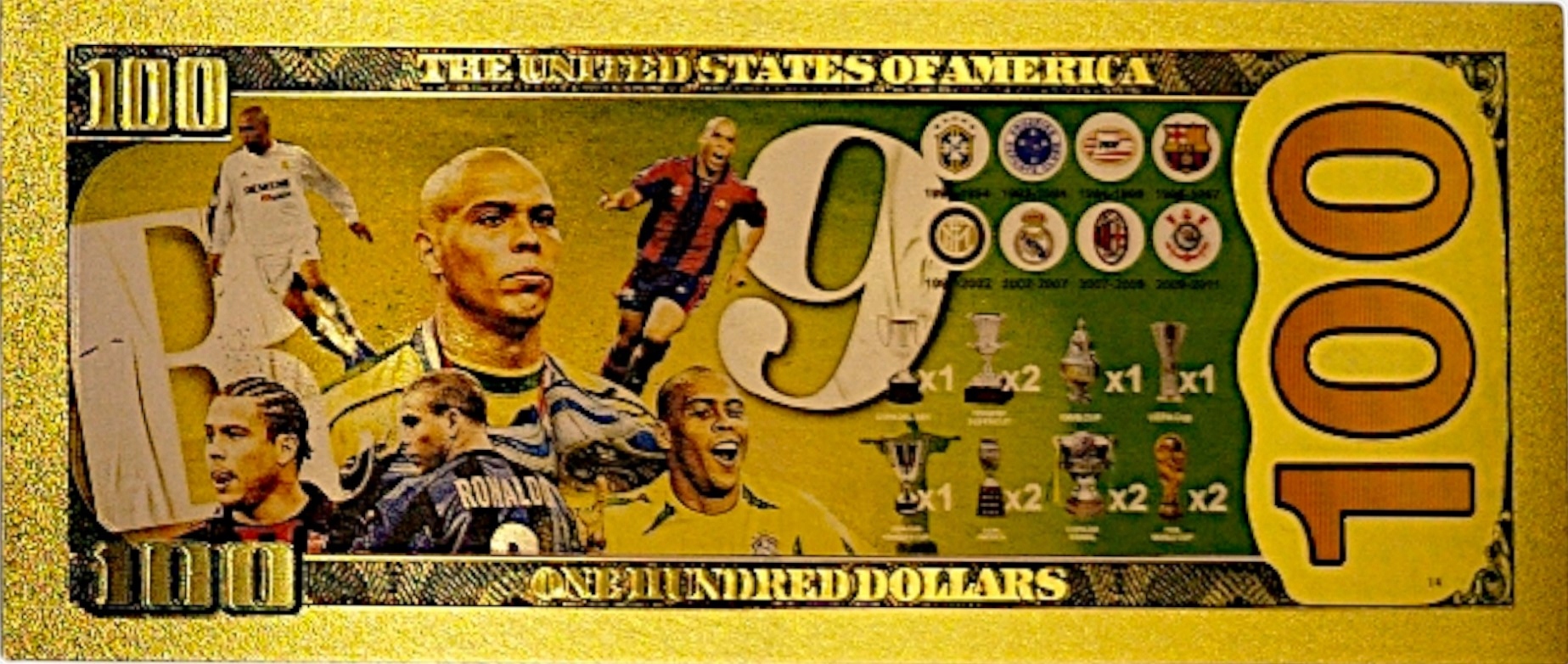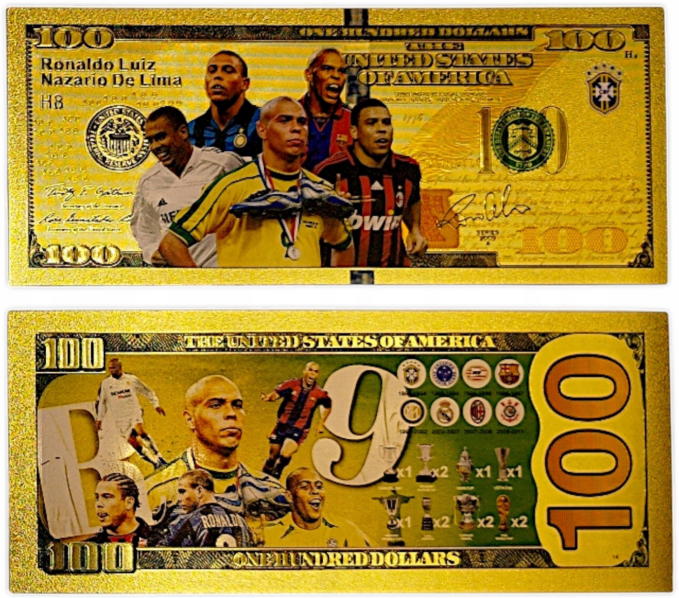 Если вы фанат футбола или коллекционер уникальных предметов, эта золотая банкнота с Роналду Луисом Насарио де Лима, известная как R9, это что -то для вас! H2>