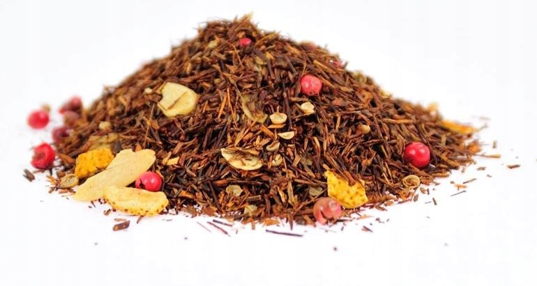 Ингредиенты: Rooibos, миндальные хлопья, фисташки, апельсиновая кожура, кориандр, ароматы, розовый перец.