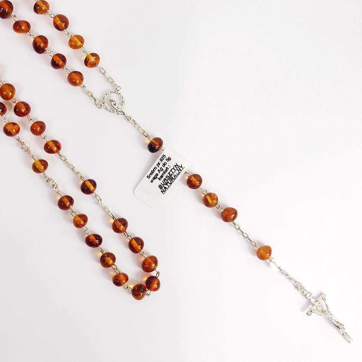 янтарного розария с сферическими бусинами, является уникальным продуктом, который сочетает в себе природную красоту янтаря с элегантностью серебра.