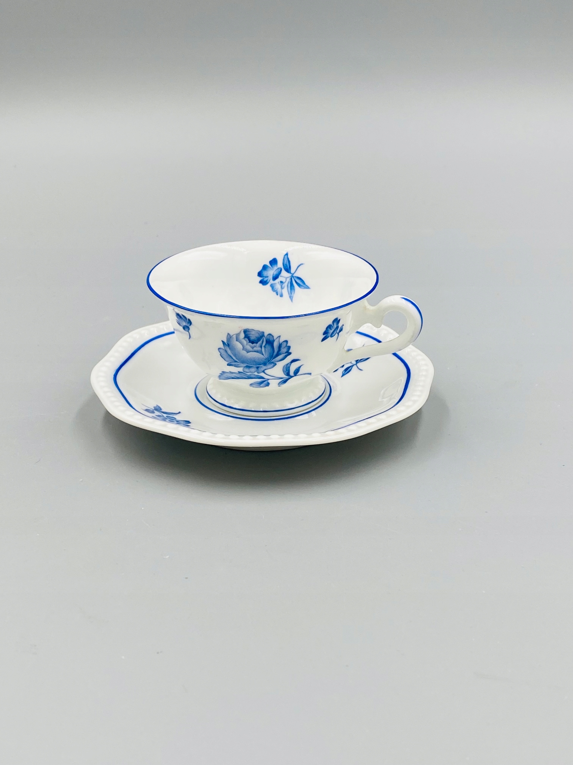 Белый фарфор, украшенный цветочным орнаментом, сапфировая роспись.