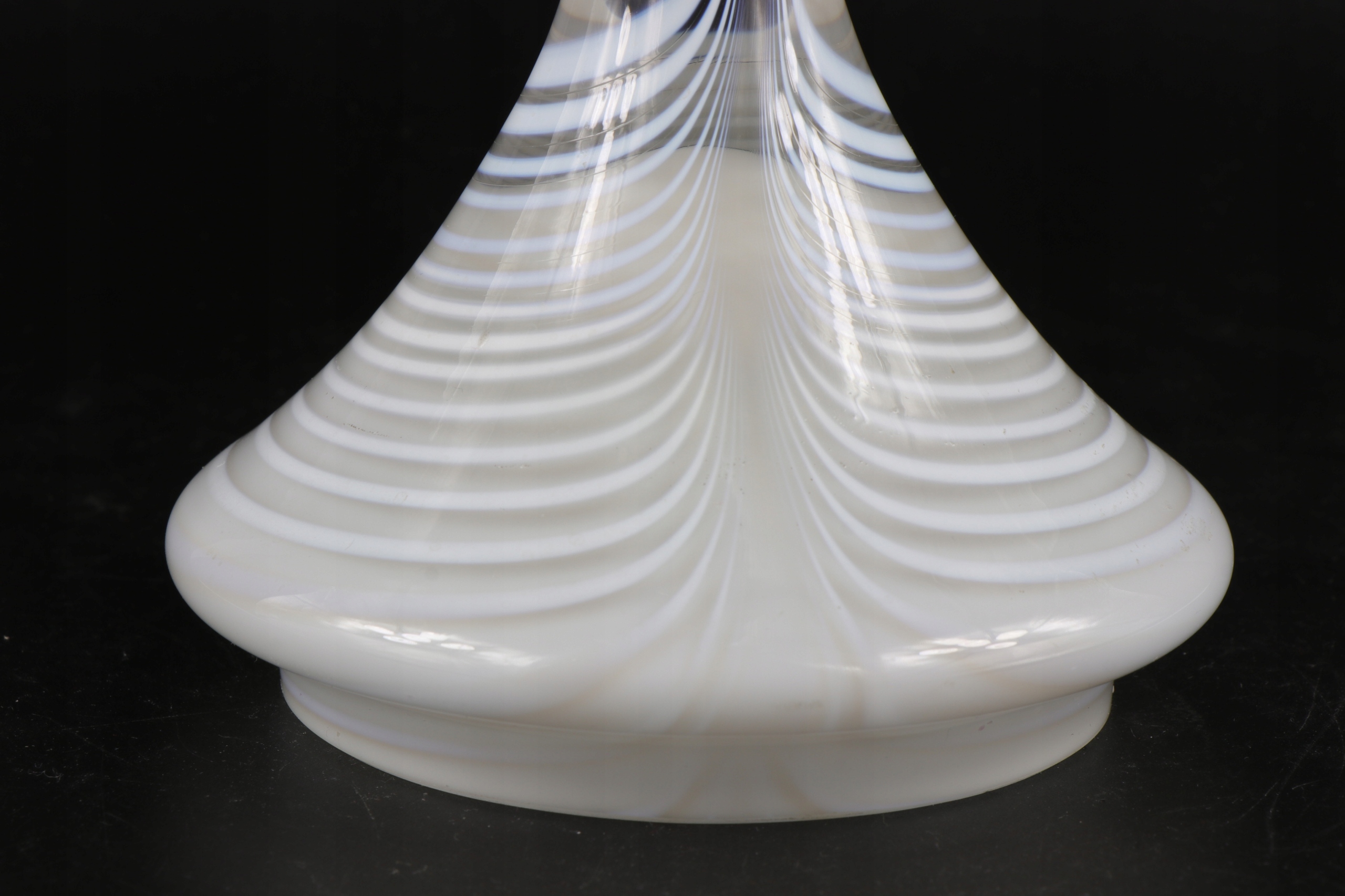 интересный стеклянный подсвечник, слоистое стекло внизу расширяется. Белое молоко и прозрачное стакан. Продукт создан для 100 -летия Розенталя.