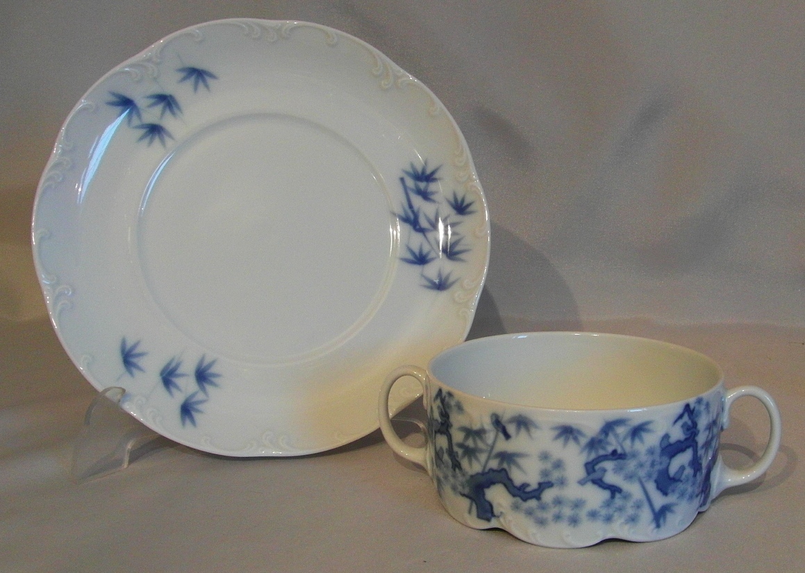 Белый фарфор, привлекательная форма. Рельефы, синий декоративный мотив.