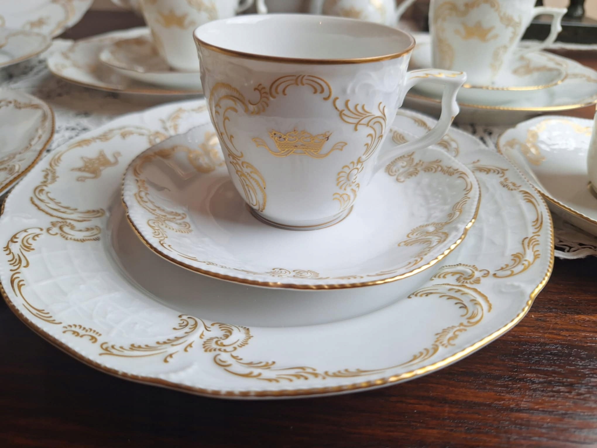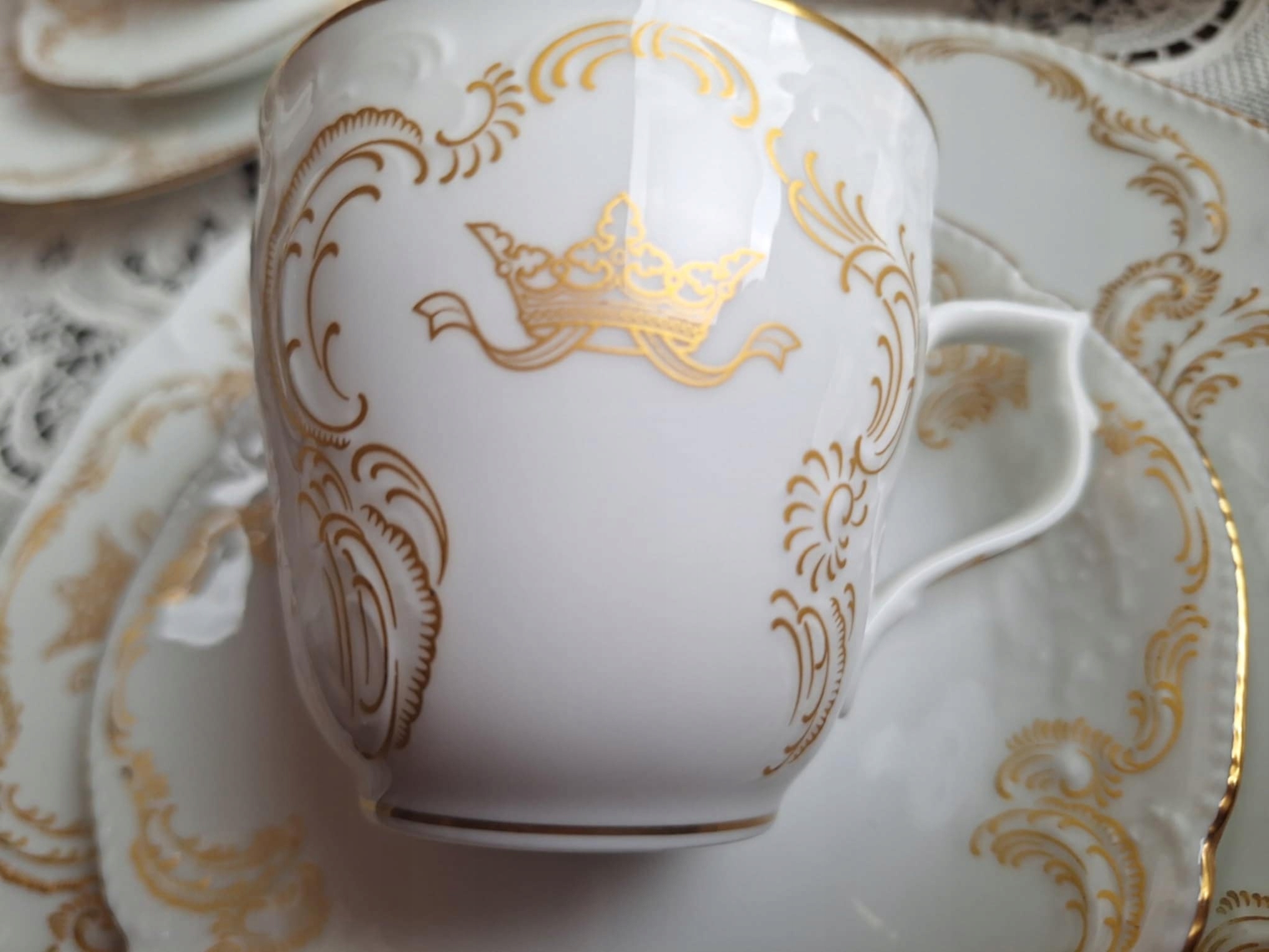 ROSENTHAL SANSSOUCI SERWIS KAWOWO DESEROWY 6 OSÓB DEKOR Z KORONĄ