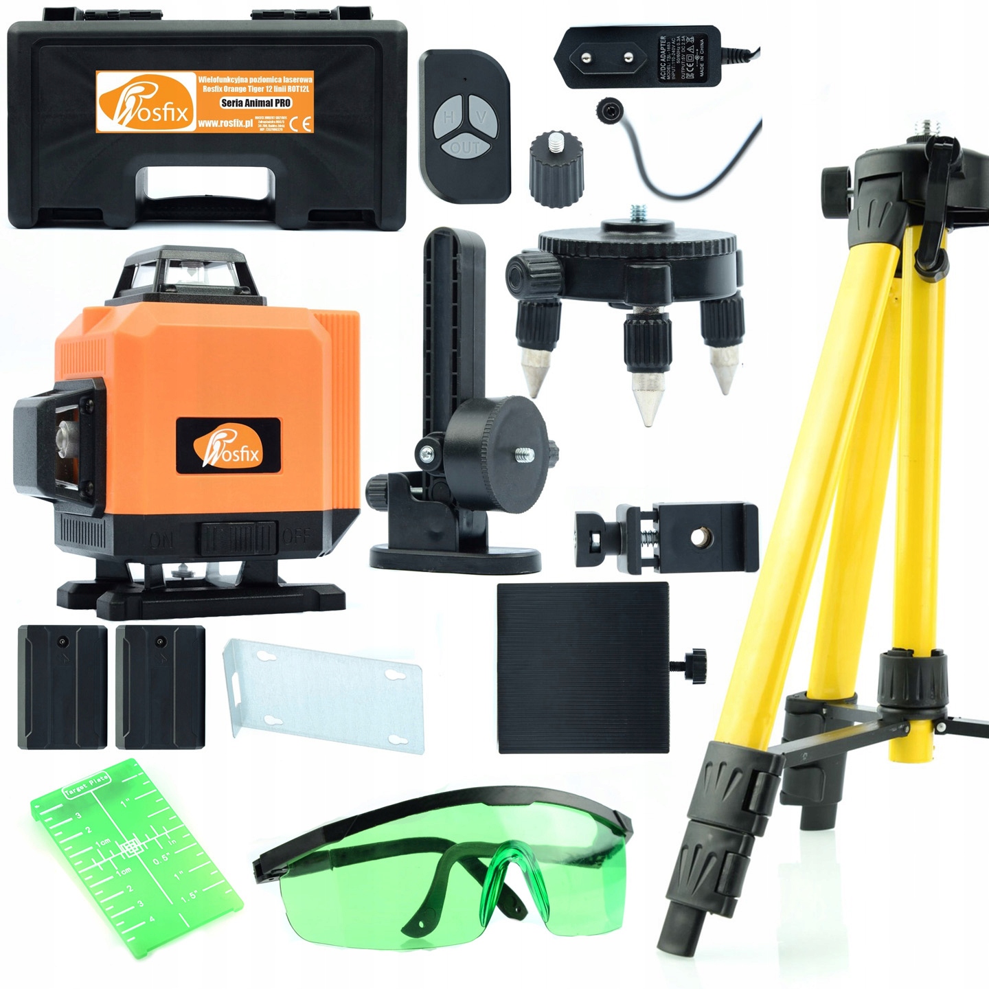 Лазерный уровень Rosfix Orange Tiger 12 линий ROT12L в чемодане с набором + штатив 43-120см для лазерного уровня + защитные очки для лазера + Зелёный щиток