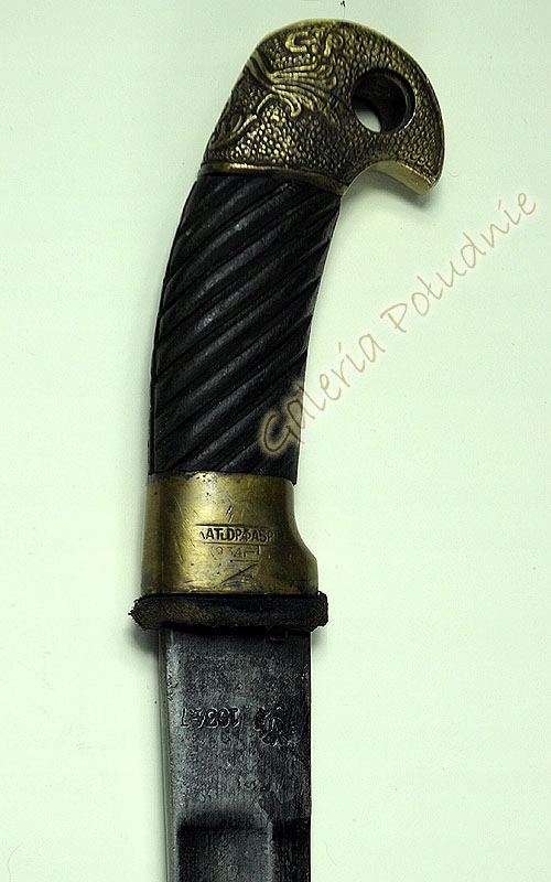 Боевая сабля русской и кавказской конницы использовалась в период раздела и позднее. Лезвие сабли соответствующего профиля изготовлено из термообработанной пружинной стали высочайшего качества, называемой кремниевой легированной сталью. Массивная рифленая рукоятка с латунной фурнитурой имеет российскую маркировку (полковую и приемочную). Ножны темно-коричневого цвета из дерева имеют латунную фурнитуру и держатели для штыков (входят в комплект).