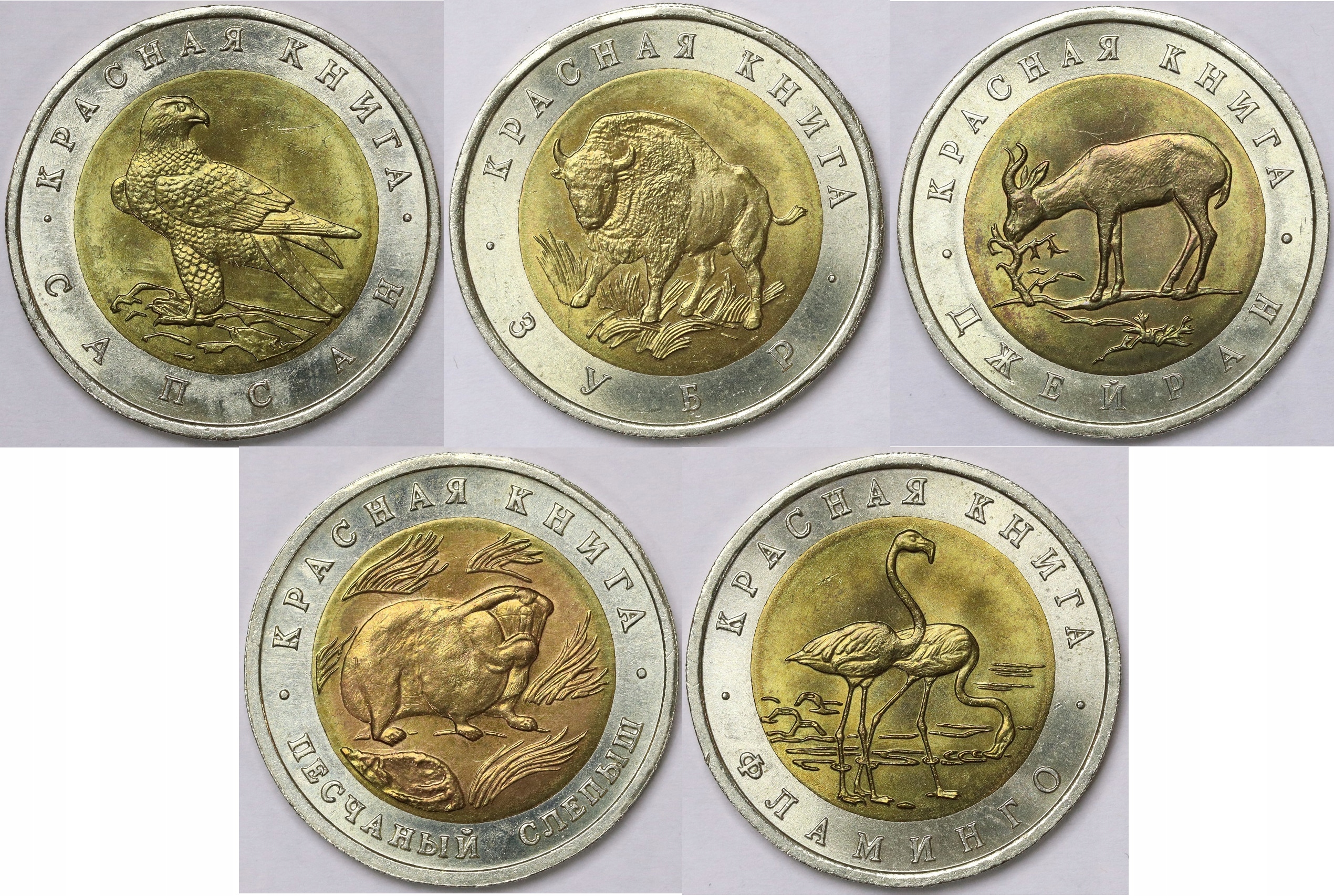 Россия, 50 рублей 1994 "Красная книга" набор из 5 монет, Газель, żubr